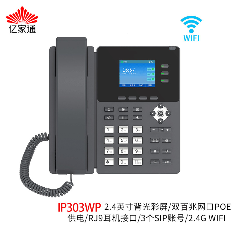 Yijiatong IP-телефон стационарный IP303WP интернет-телефон POE питания WiFi цветной экран 100 мегабайт двойной порт