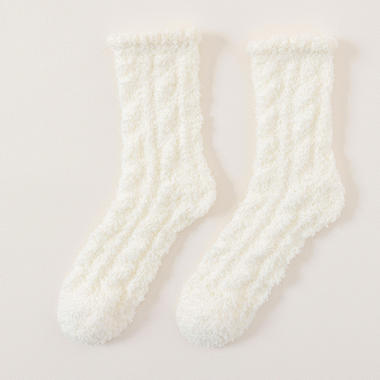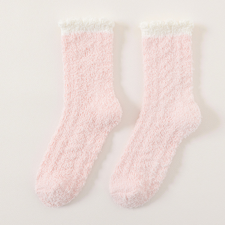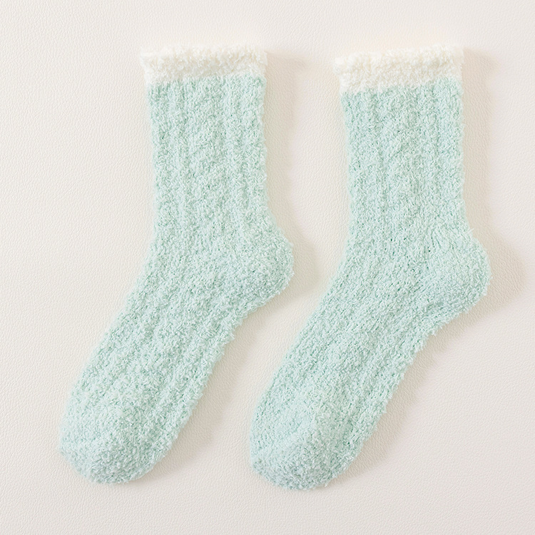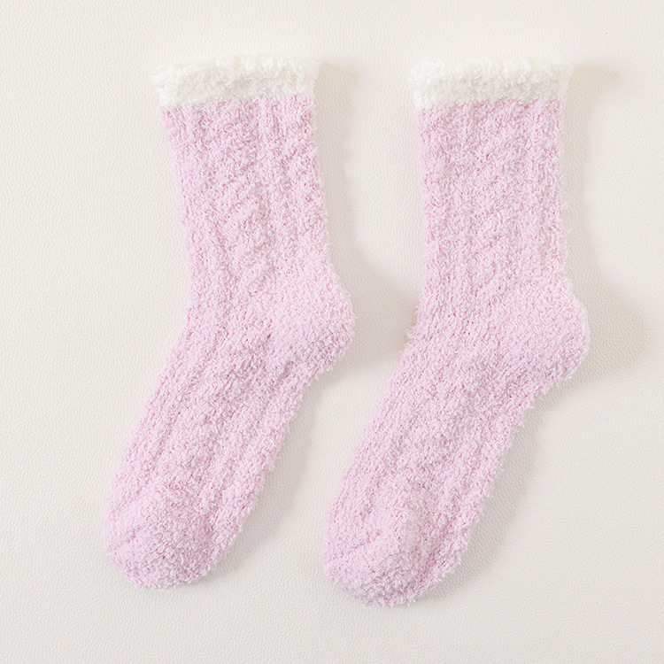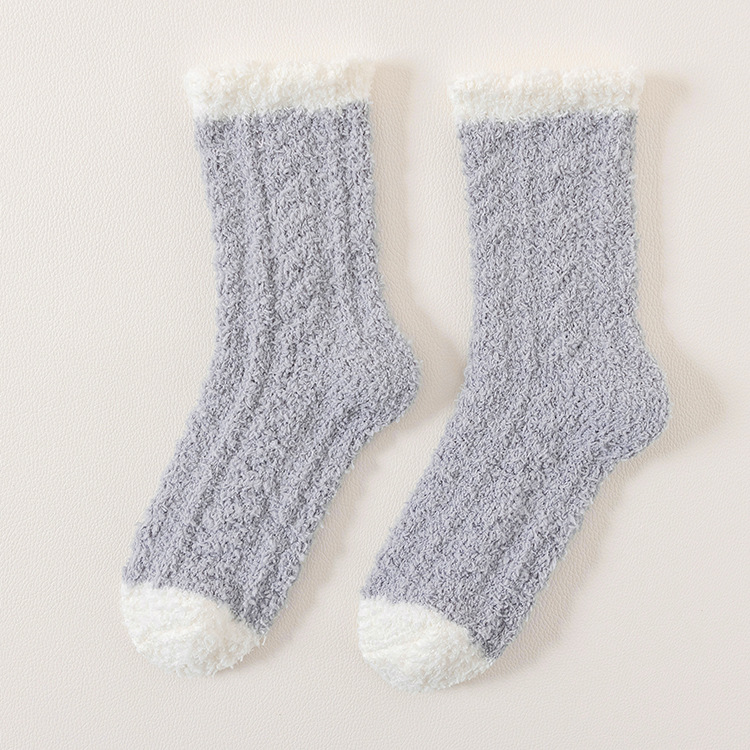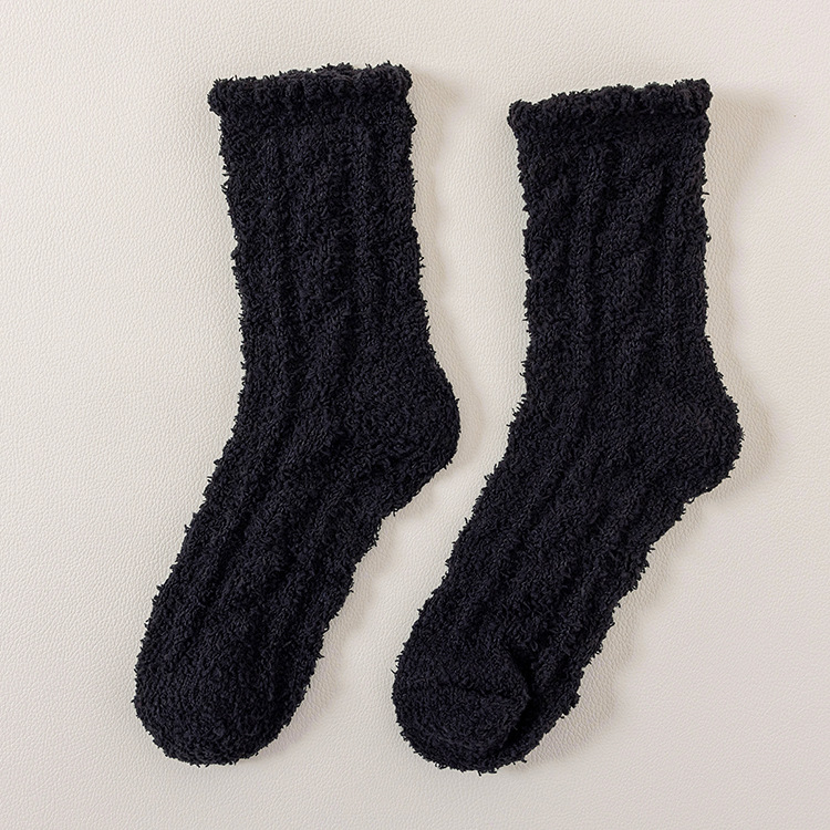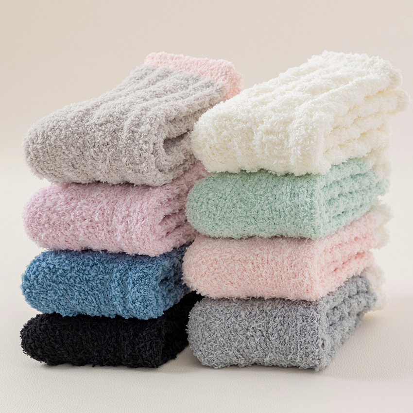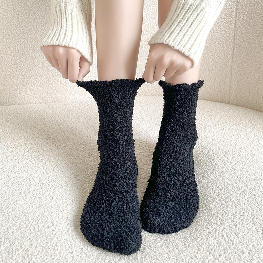 Осенне-зимние носки из кораллового флиса, женские носки для сна в тон, утолщенные теплые домашние простые носки средней длины
