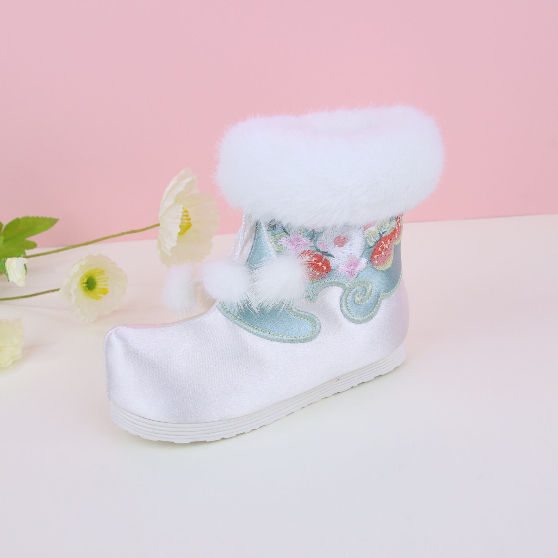 [Rabbit Jue] 2023 новые ботинки для девочек Hanfu в китайском стиле ретро вышивка и бархатные ботинки для детей снежные ботинки