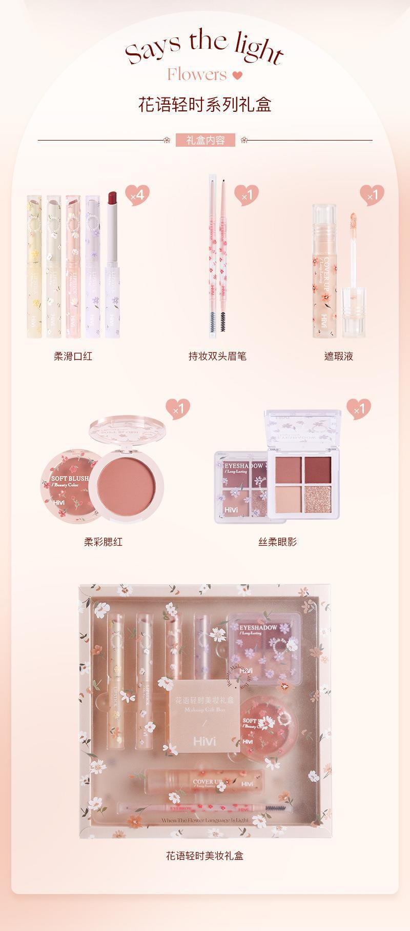 Подарочная коробка Hivi с цветочным языком, набор для макияжа, бархатная глазурь для губ, помада, 8 предметов, праздничный подарок для подруги и жены