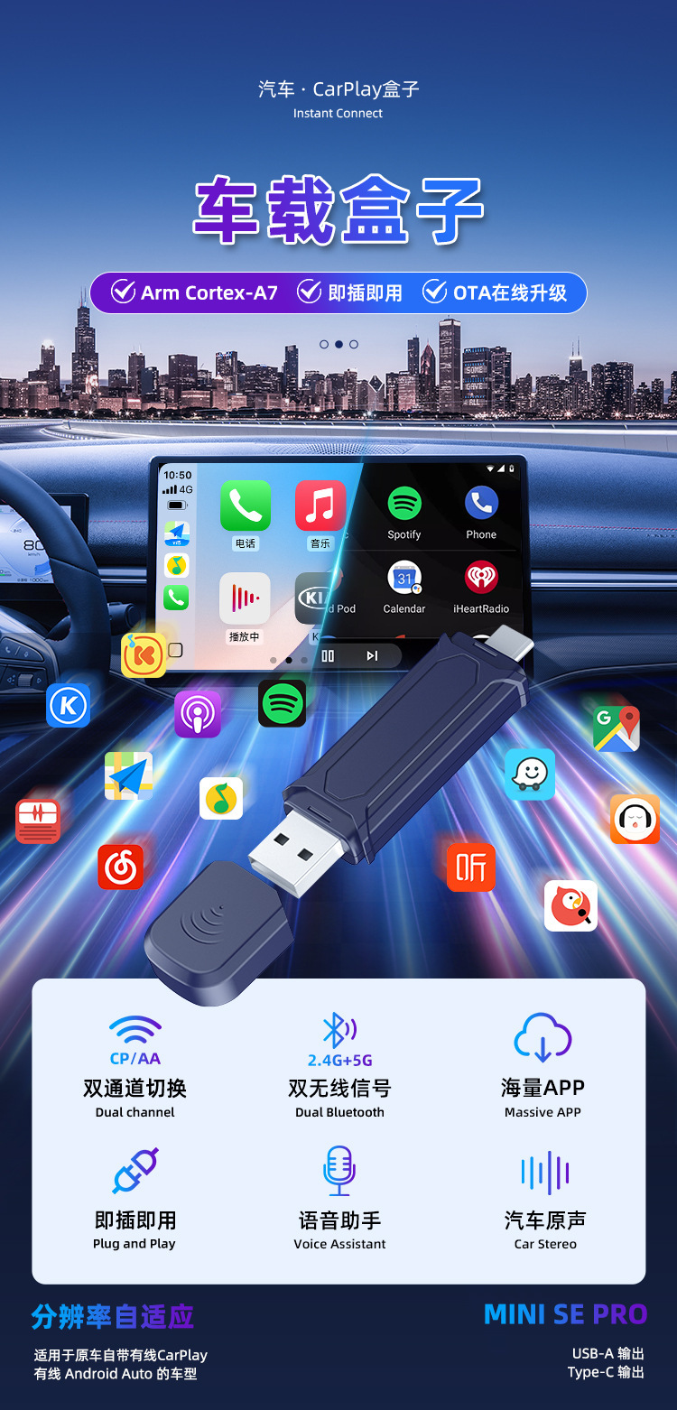车连易原车有线转无线carplay模块androidauto安卓盒子车载转换器