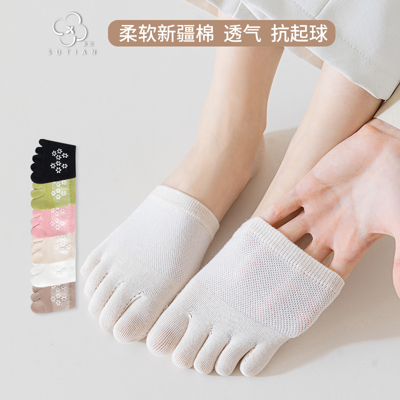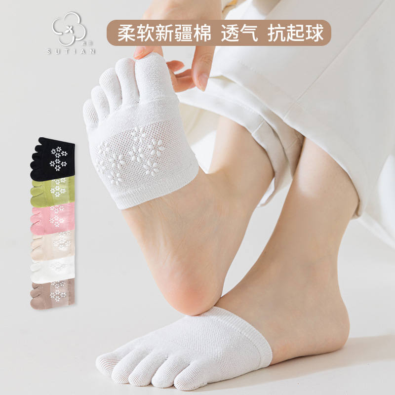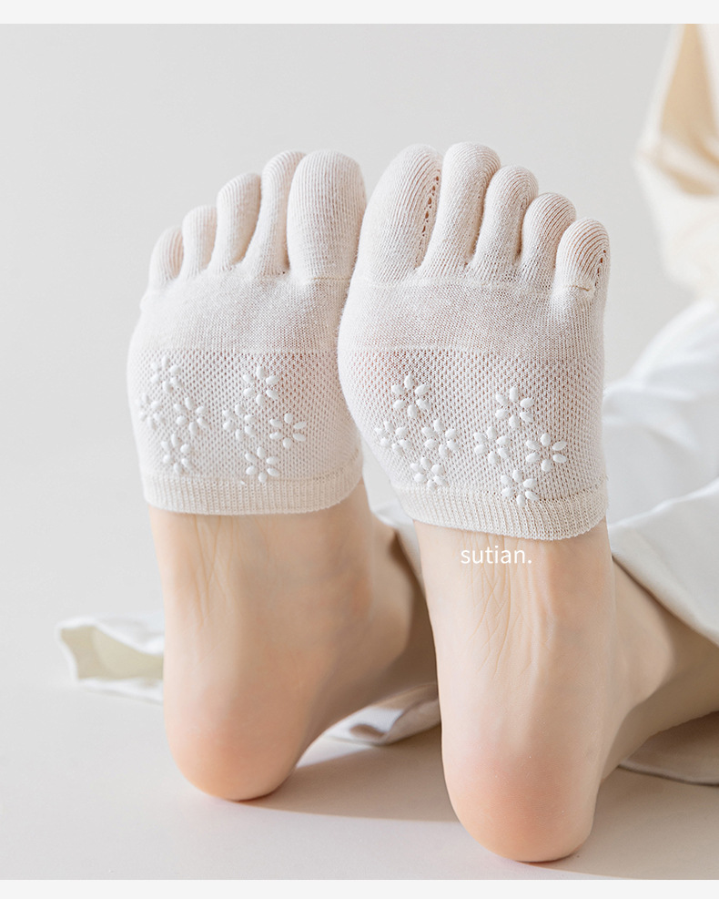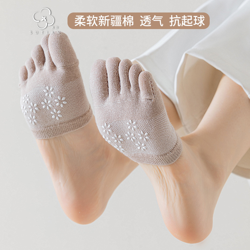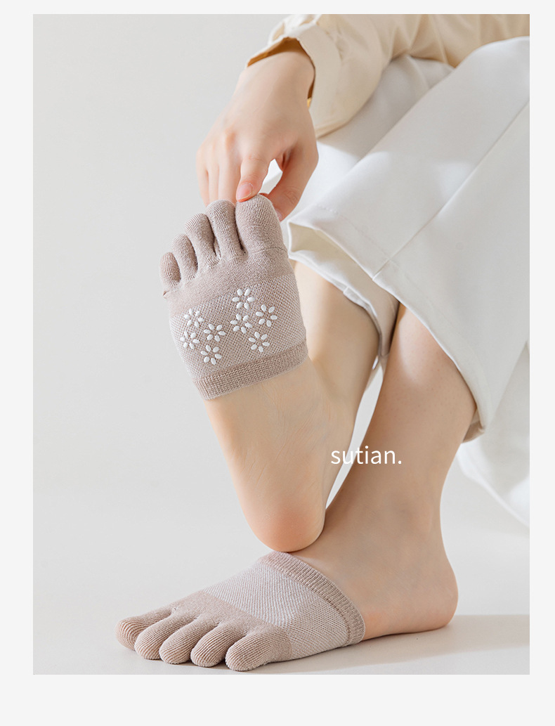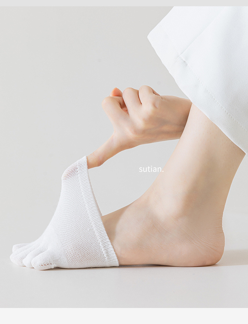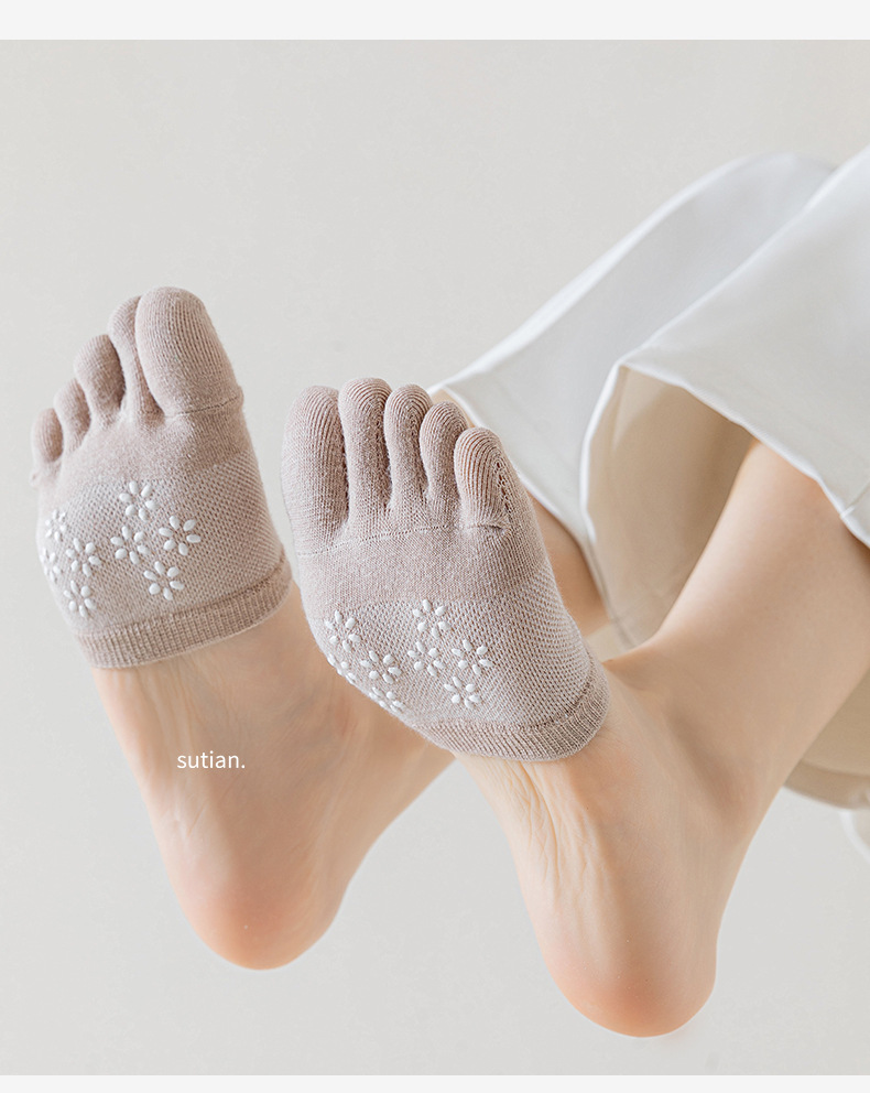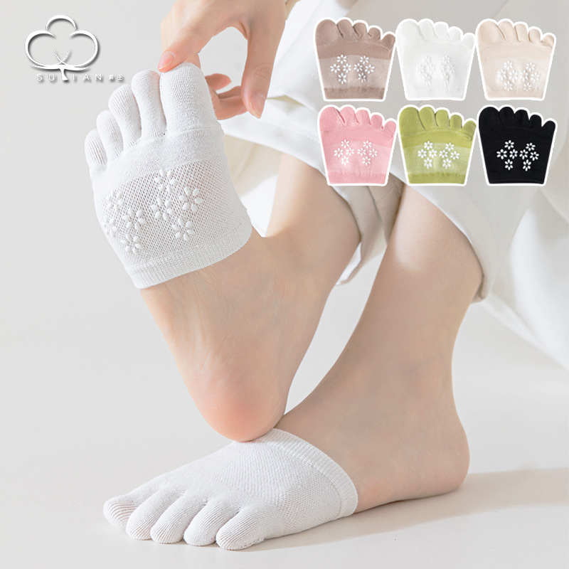 Носки с пятью пальцами, женские невидимые хлопковые носки, летние женские носки из тонкой сетки с полупальцами, Нескользящие женские носки на высоком каблуке и полупальце