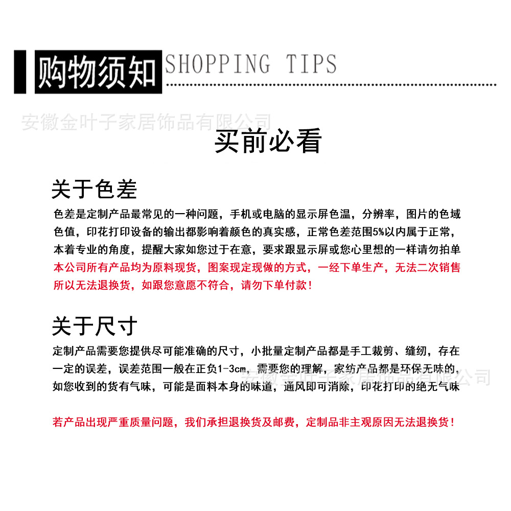 售前说明:本公司所有产品均为顾客指定印花定制产品,一经下单生产,无法二次销售,所以无法退换货,如跟您意愿不符合,请勿下单付款!