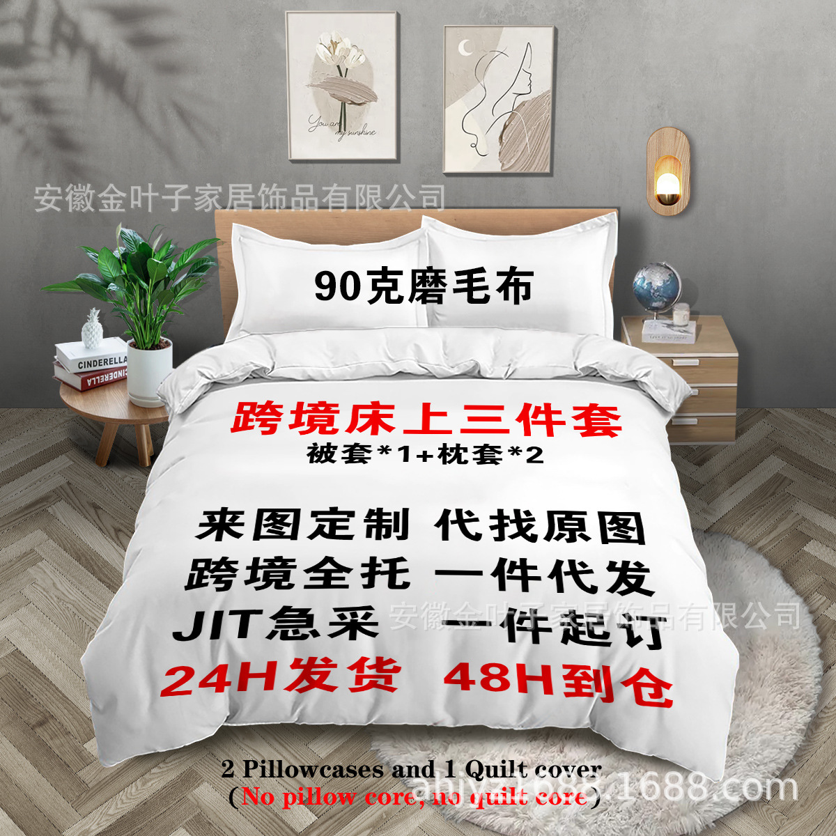 跨境床上三件套花型图案均为定制,可一件起订,无库存压力,非常适合跨境电商朋友们,可来图定制,代找高清图,代贴面单,一件可发,48-72小时准点发货!