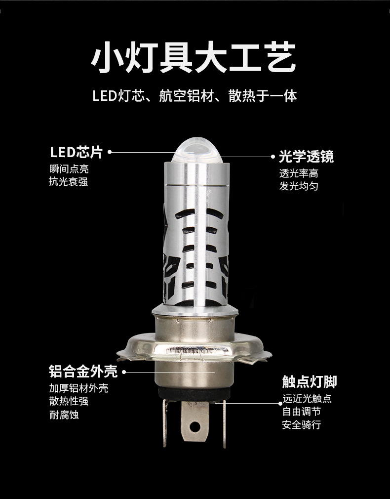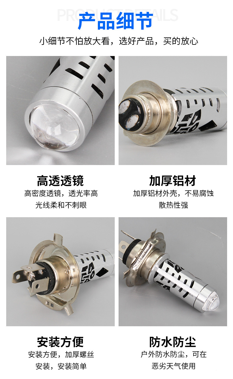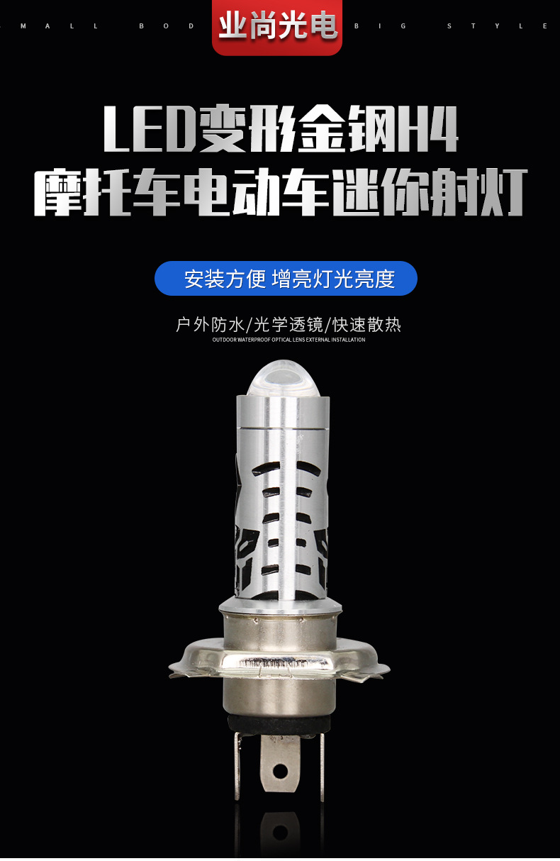 Светодиодный мини-прожектор для мотоцикла с трансформацией из золотой стали H4 и электромобиля