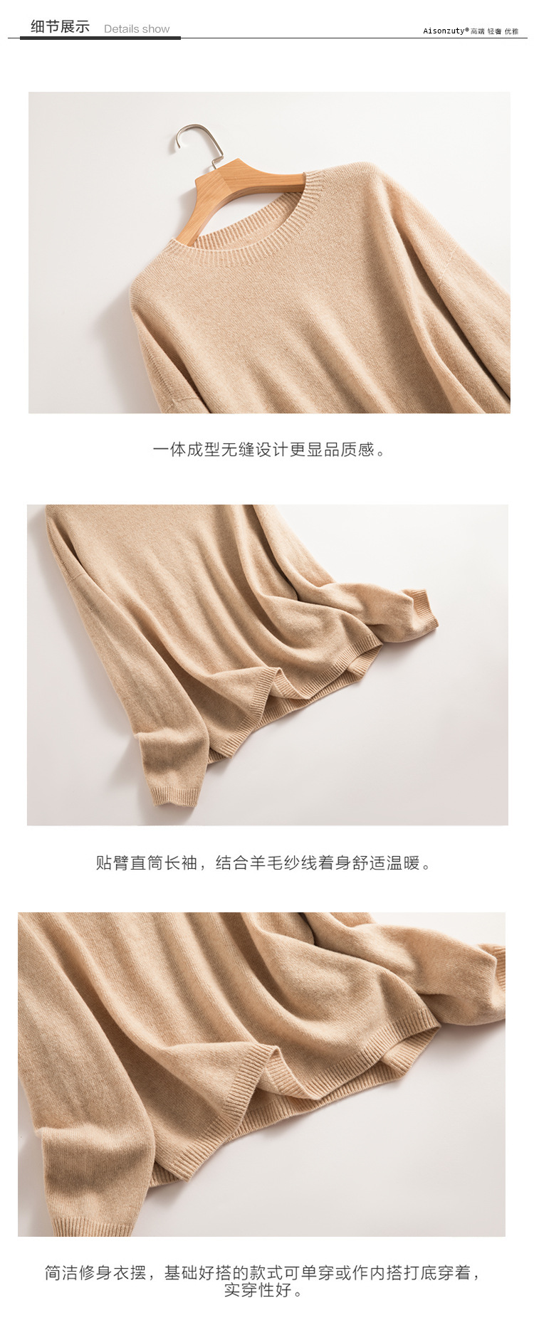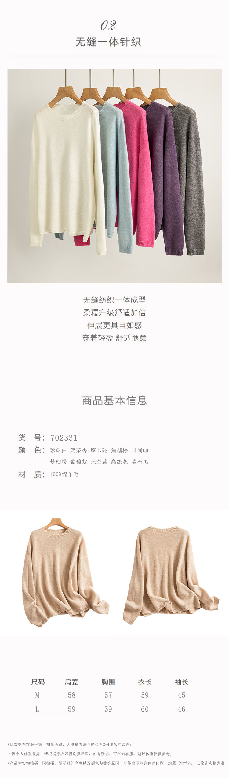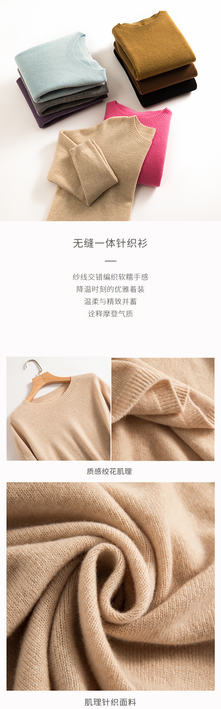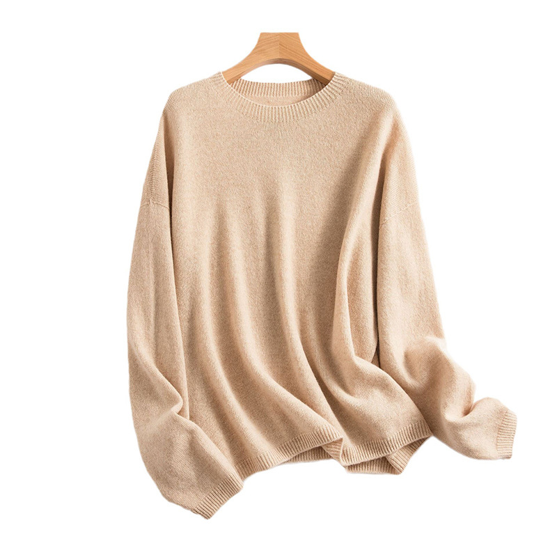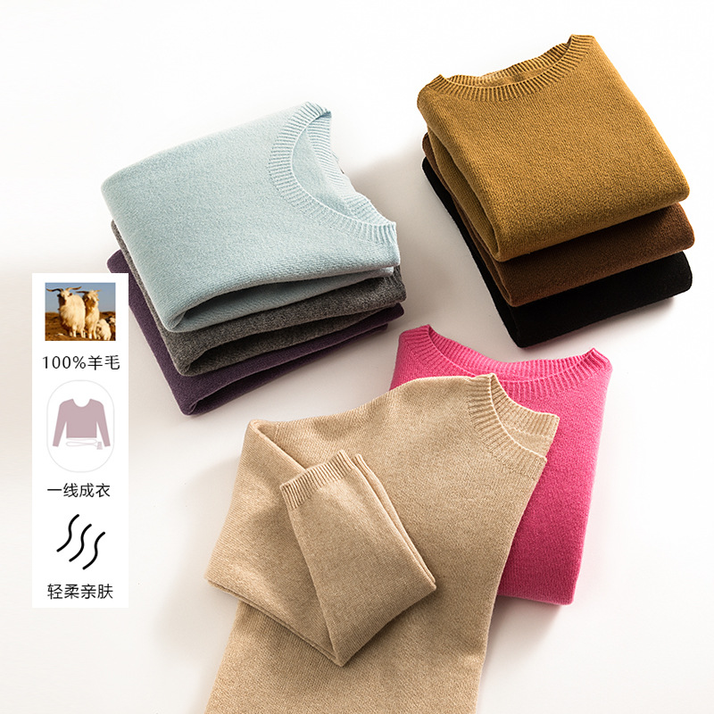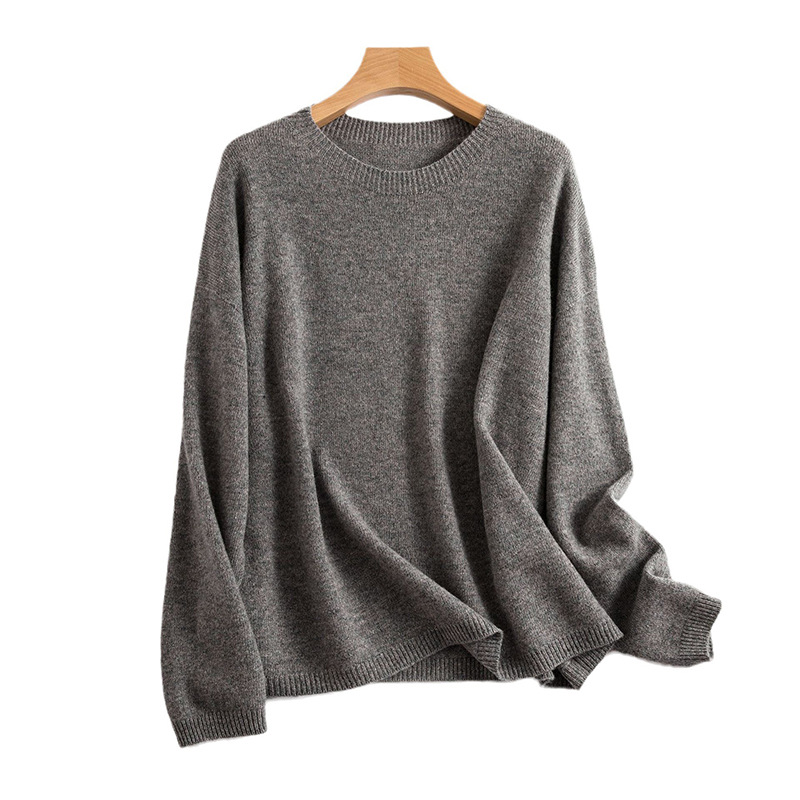 Женский свитер из 100% чистой шерсти, бесшовный, готовый к носке, мягкий и гладкий, свободного кроя, облегающий, с круглым вырезом, вязаный базовый слой для зимы.
