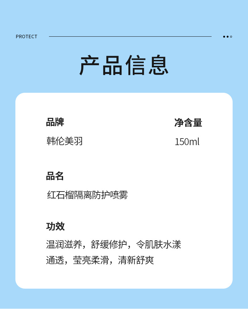 Han Lun Meiyu Защитный спрей с красным гранатом Увлажняющий и увлажняющий Освежающая текстура Увлажняющий кожу Нелипкий и нежный спрей