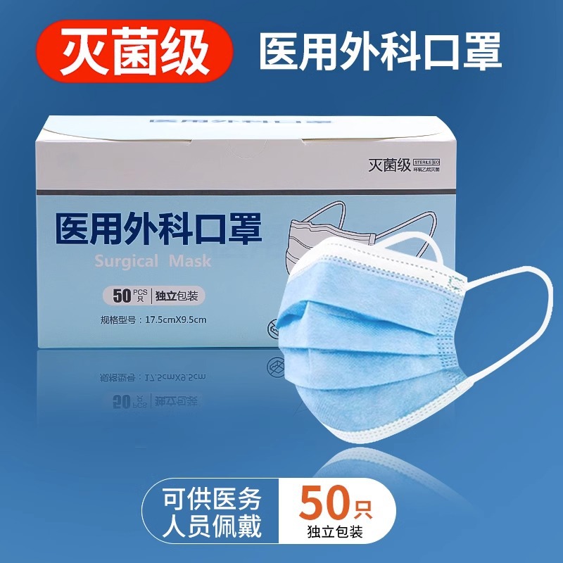 Медицинская хирургическая маска для стерилизации одноразовая синяя трехслойная защита для взрослых в индивидуальной упаковке, оптовая продажа с фабрики