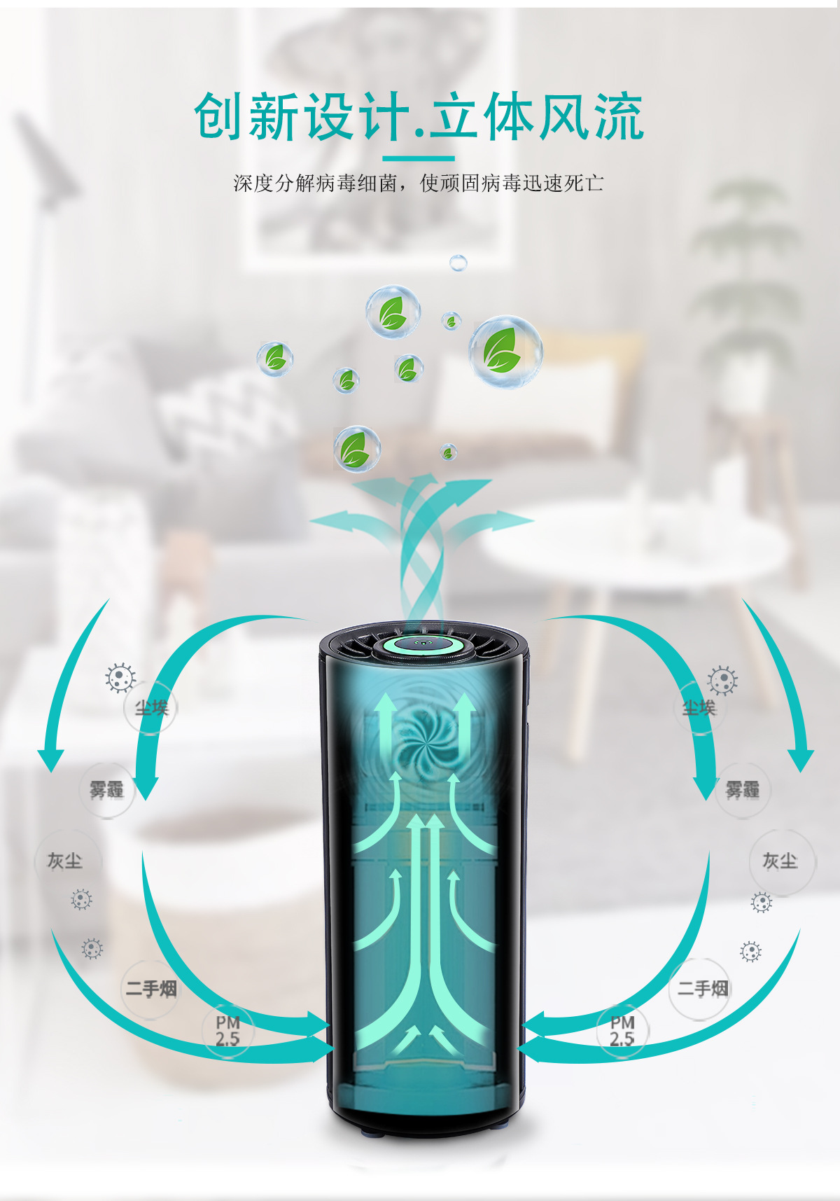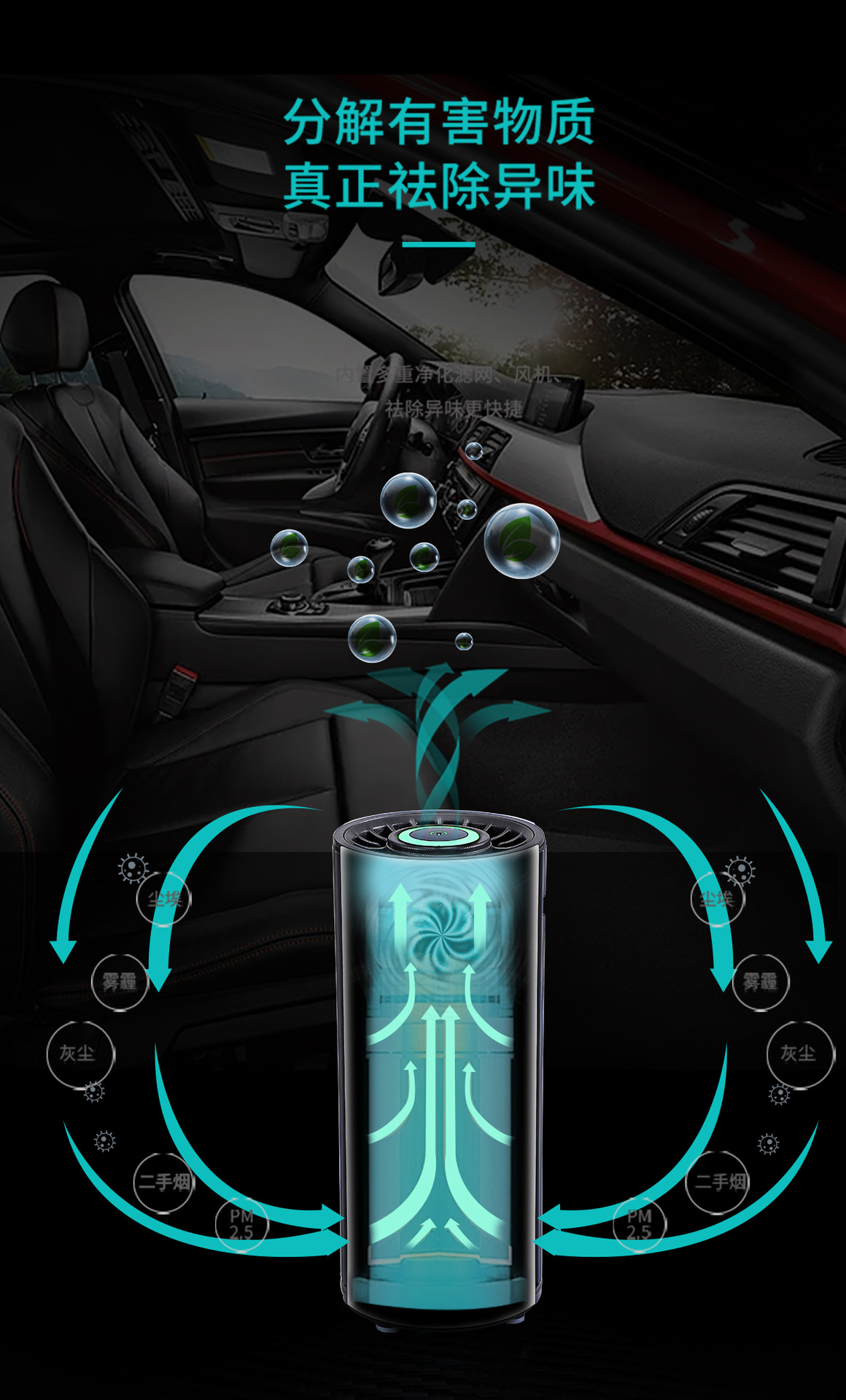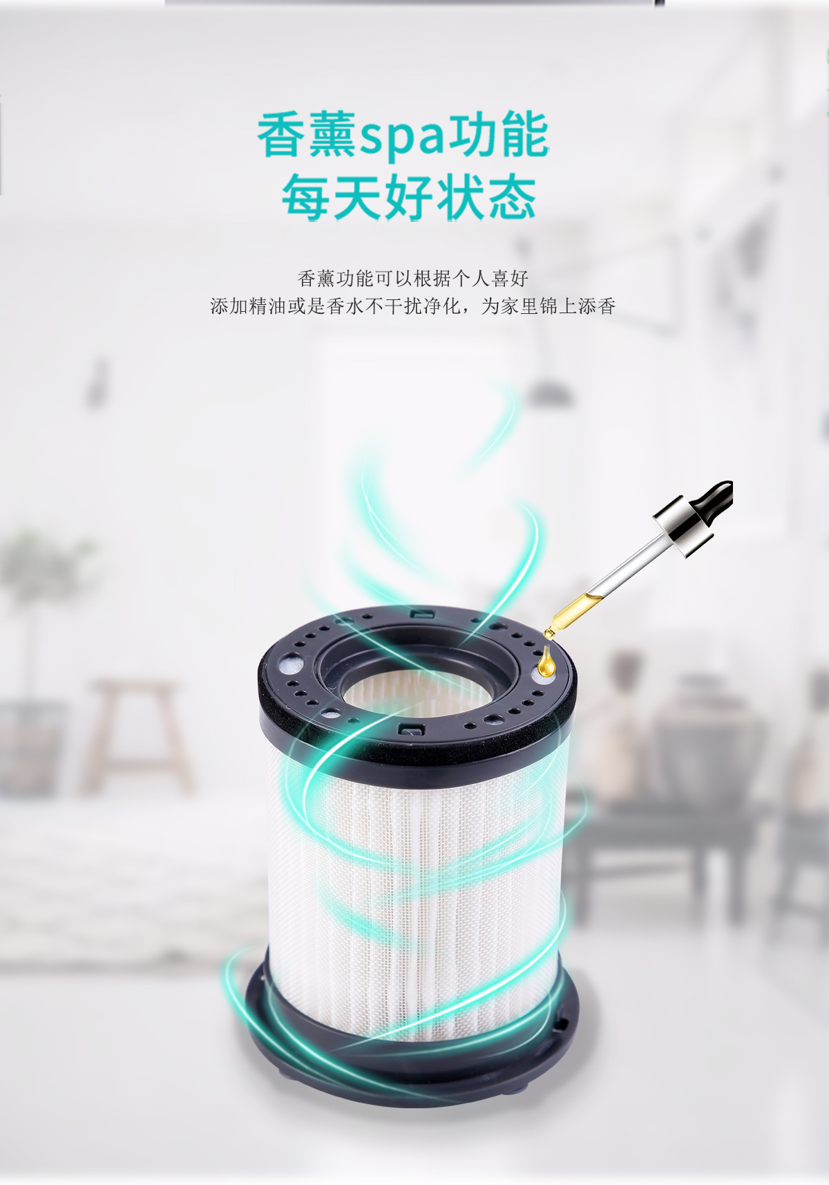 4、除雾霾除灰尘,过滤空气PM2.5 5、可以添加精油