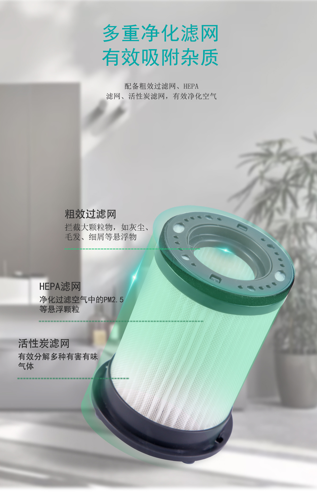 3、高效净化网(CADR值30m³/h)除PM2.5、除尘、除味
