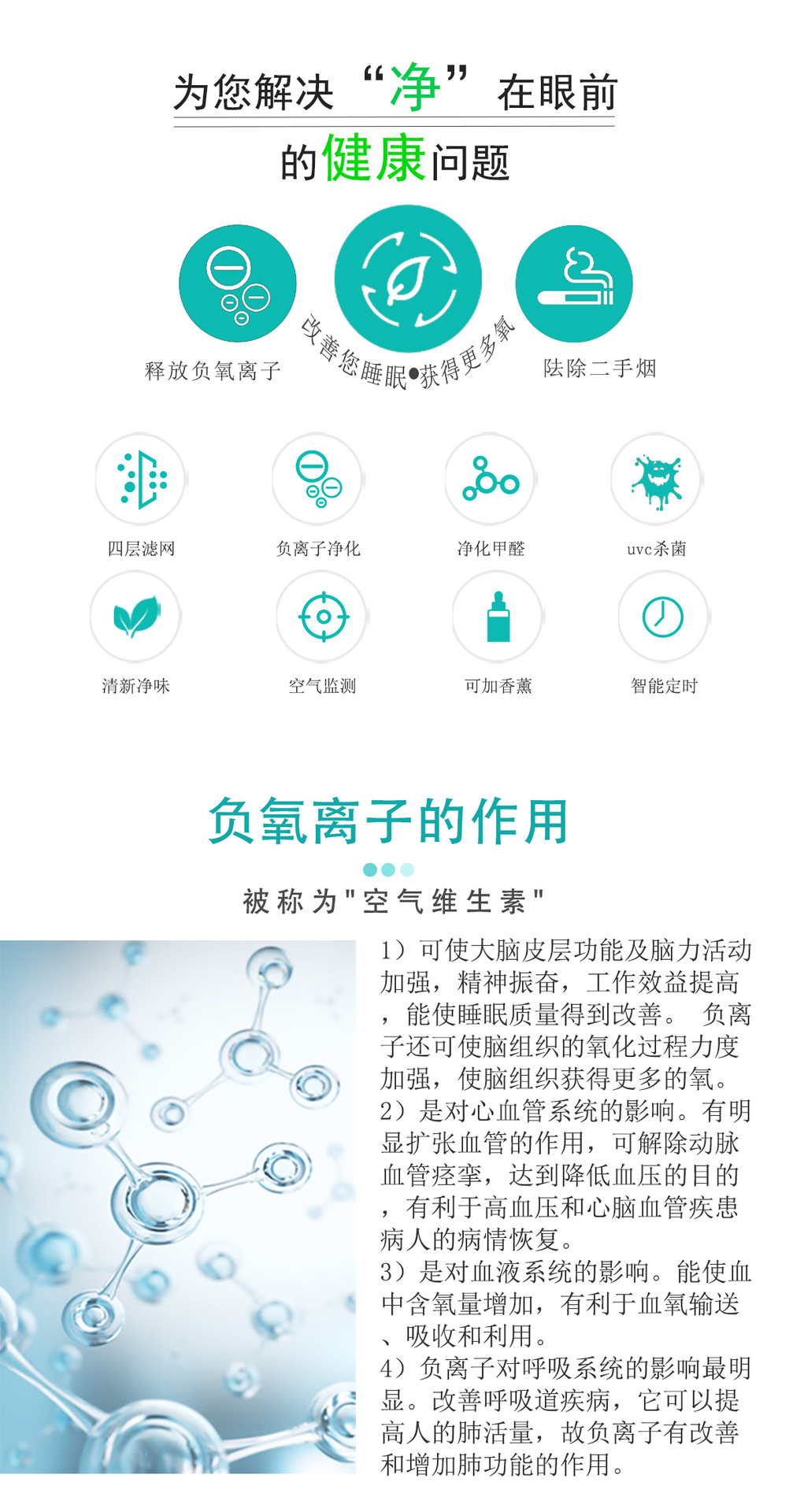 1、有效去除甲醛/苯 2、有效杀菌净化 3、有效去除二手烟