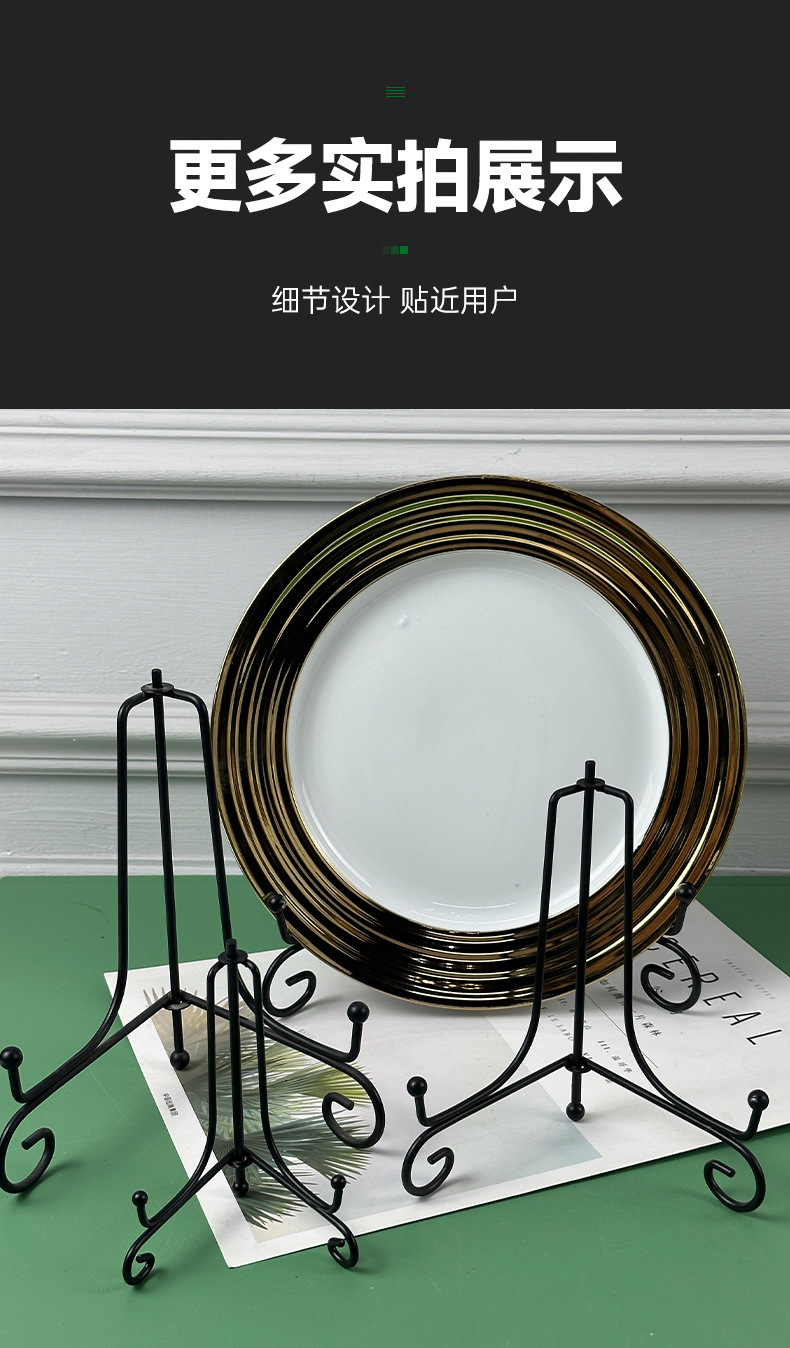 Фабрика Прямые трансграничные железные черные поделки легкие Роскошные тарелки чайный торт Треугольный Кронштейн керамическая тарелка витрина