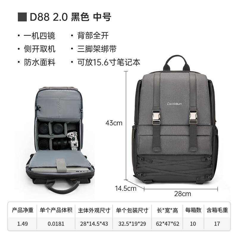 1,0 среднего серого цвета (1 машина 4 зеркала боковая открывая задняя полуоткрывая водонепроницаемая ткань); 2,0 среднего серого цвета (1 машина 4 зеркала 15,6 ноутбук с боковым открытостью и задняя часть полностью открытой машины штатив ремешка водонепроницаемая ткань); 2,0 среднего черного цвета (1 машина 4 зеркала 15,6 ноутбук с боковым открытостью задний полностью открытый штатив ремешка водонепроницаемая ткань); 2,0 большой серый (2 машины 6 зеркал 17.3 ноутбук 11-дюймовый ipad боковой открыватель