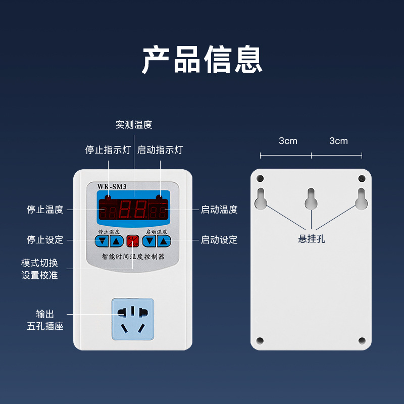 WK-SM3 Умный термостат Цифровой регулируемый контроллер температуры и влажности с розеткой Электронный сенсорный переключатель Мультизонд