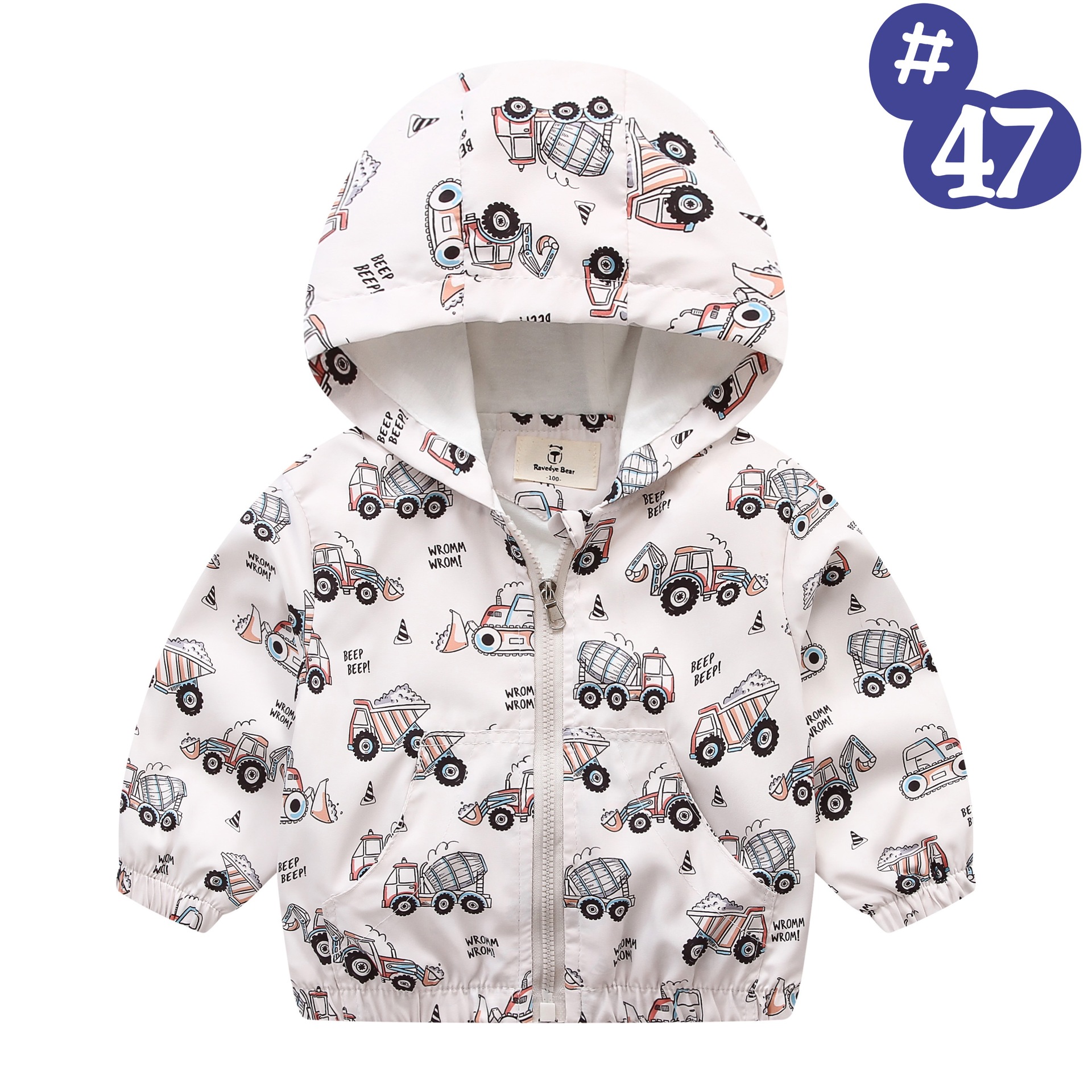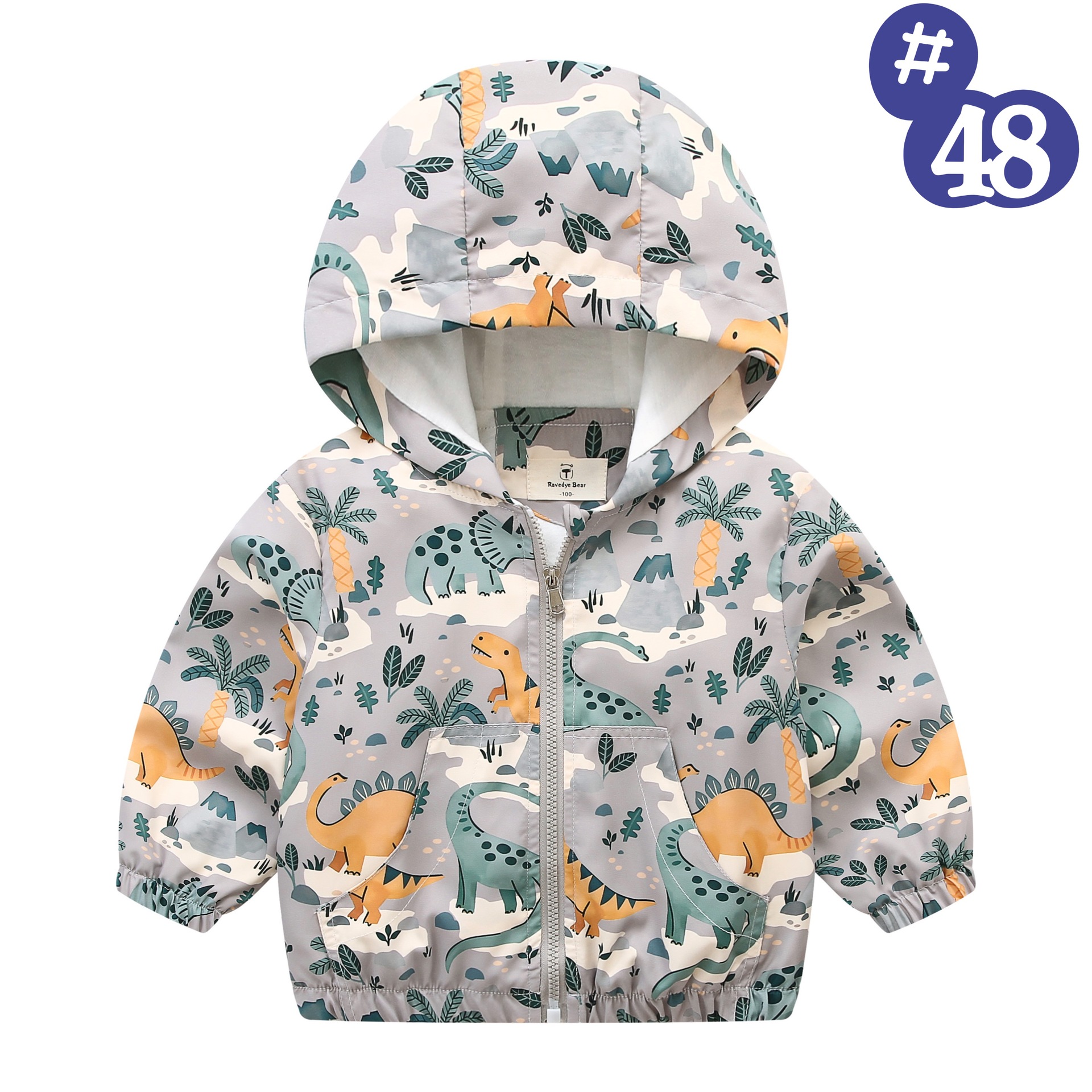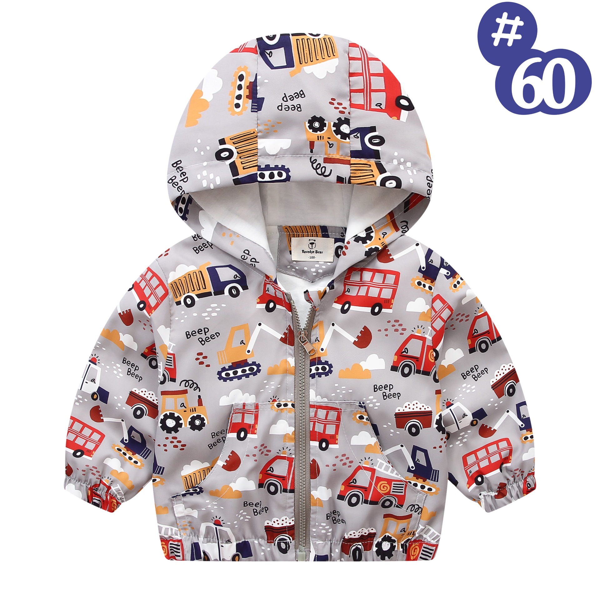 Прямые поставки с фабрики: детское весенне-осеннее пальто-тренч в корейском стиле для мальчиков 2025 года, короткое, на молнии, с мультяшными рисунками.