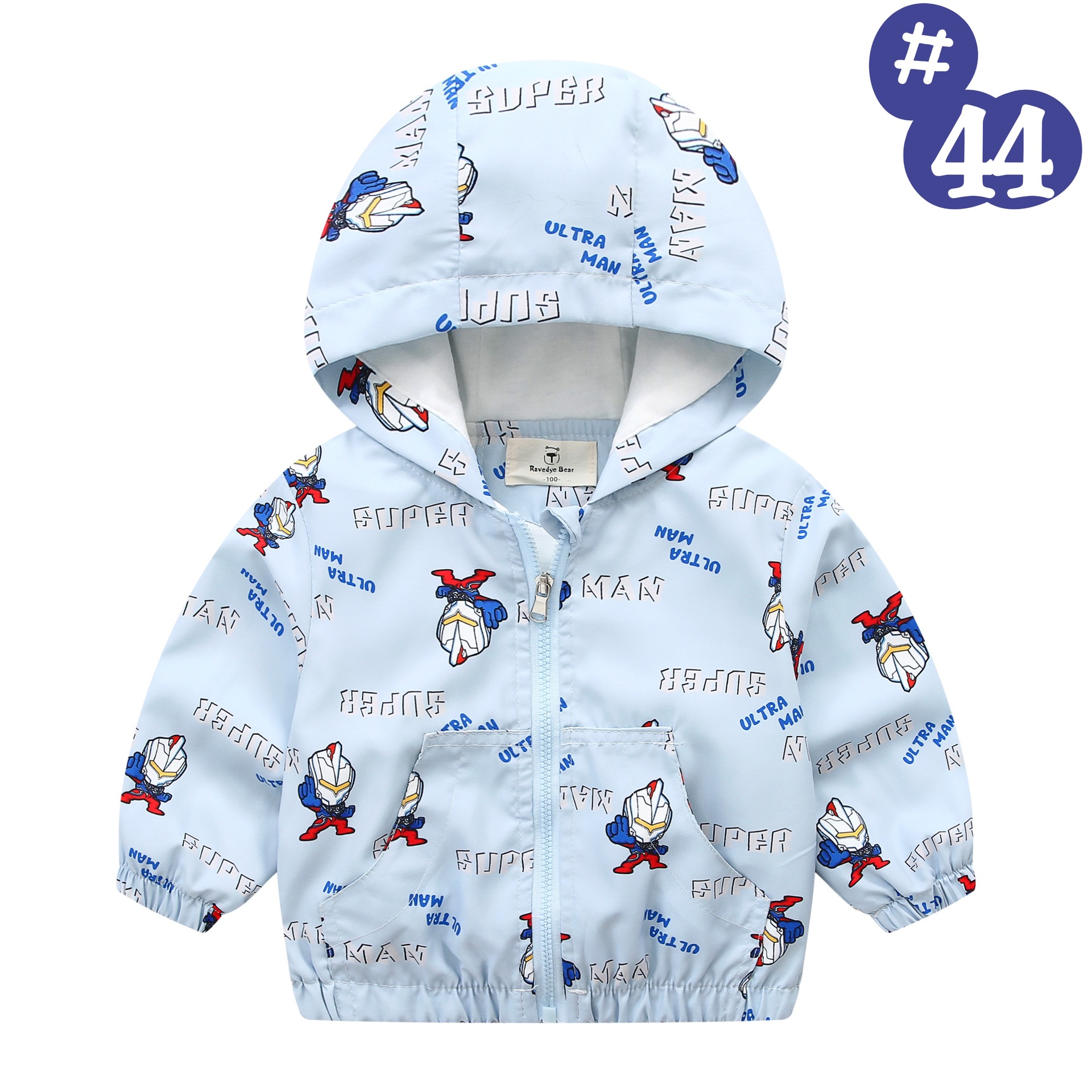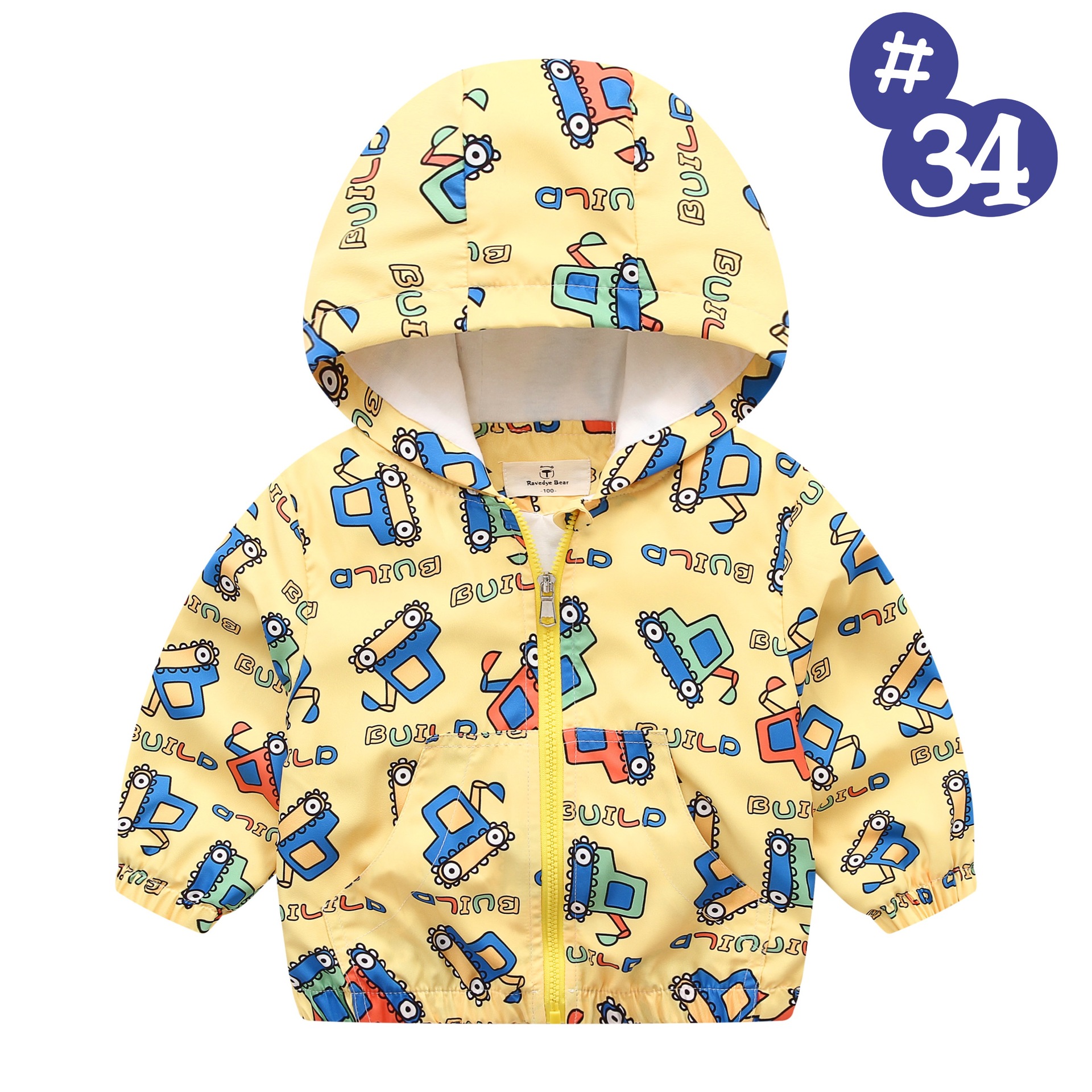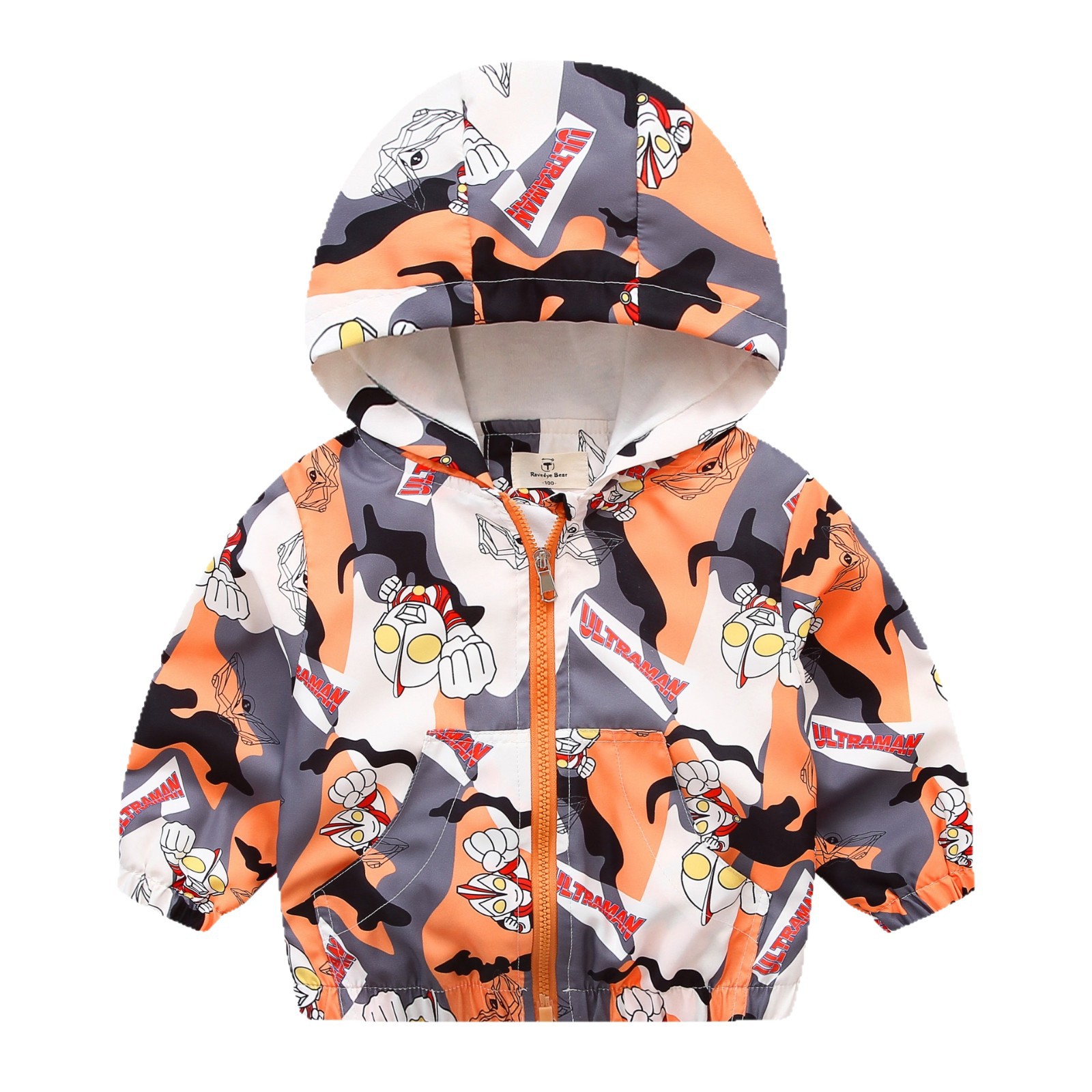 Прямые поставки с фабрики: детское весенне-осеннее пальто-тренч в корейском стиле для мальчиков 2025 года, короткое, на молнии, с мультяшными рисунками.