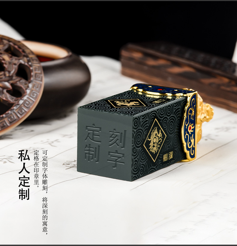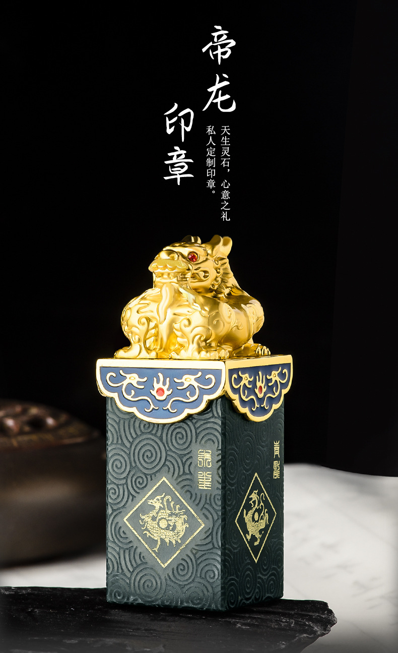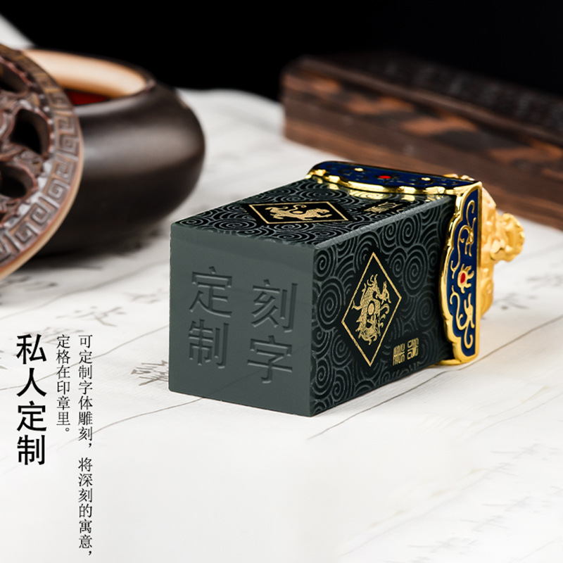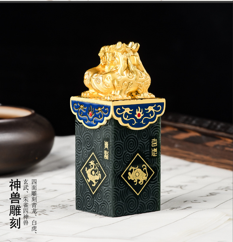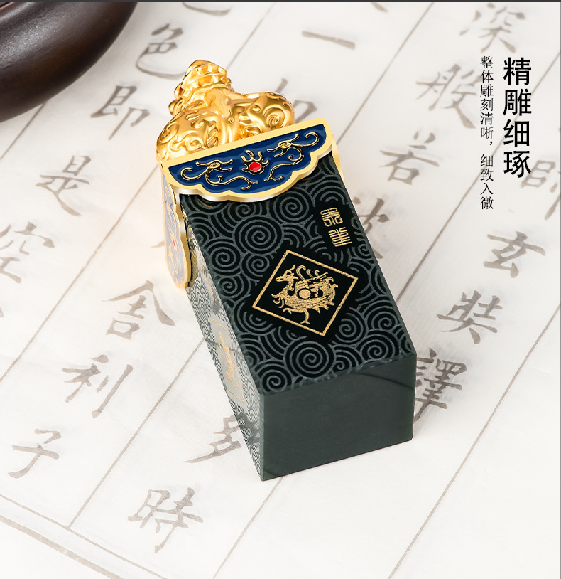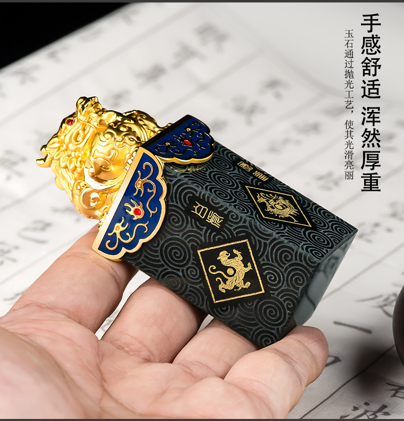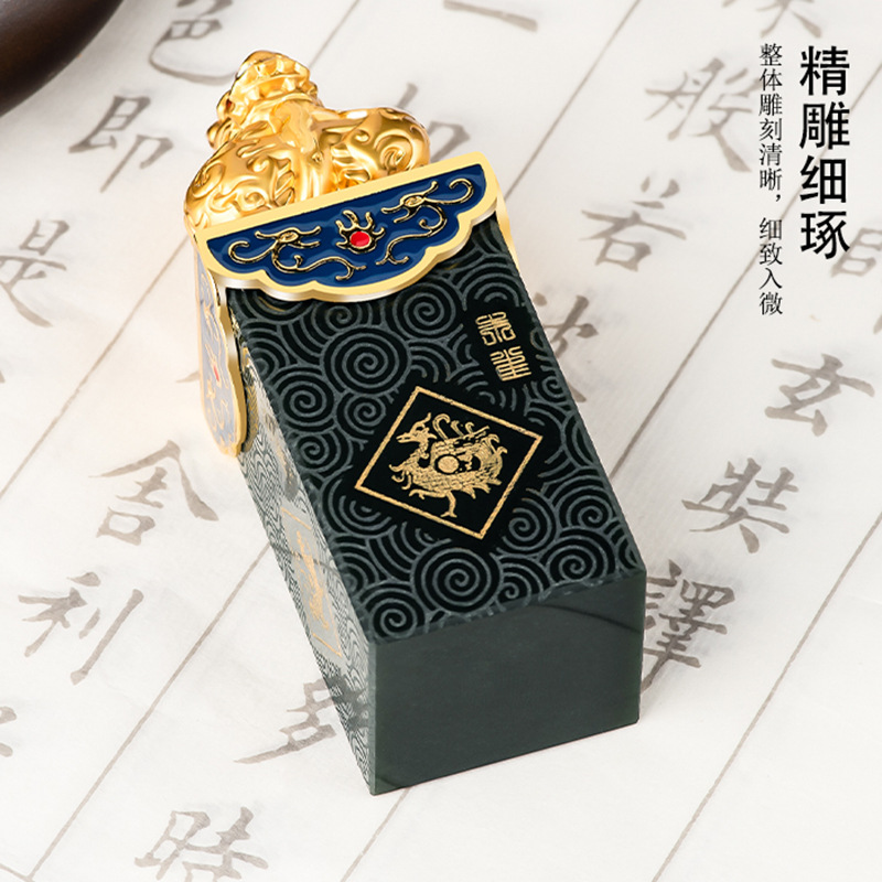 Высококачественный натуральный старый материал Hetian нефритовые чернила Нефритовая печать четыре Бога зверя PanLong Нефритовая печать Нефритовая статья игровые украшения оптом