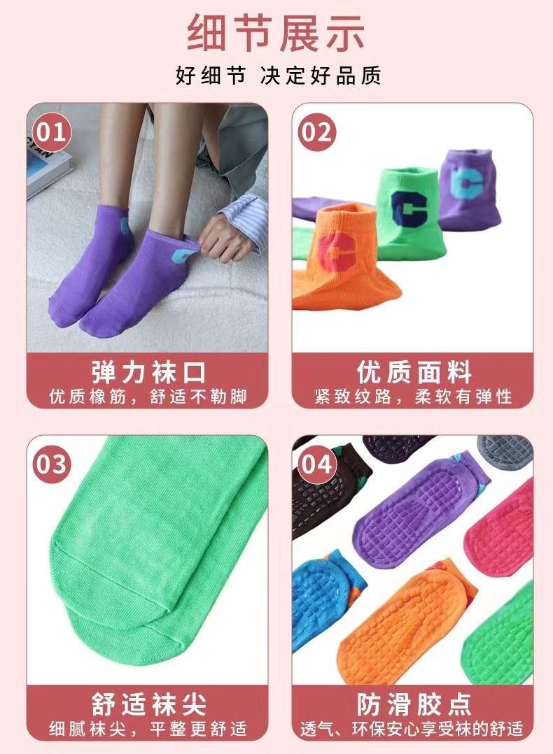 Нескользящие носки, носки для батута, детские носки для раннего развития, носки с точечным противоскользящим покрытием для парков развлечений, носки для йоги для взрослых, влагопоглощающие и быстросохнущие