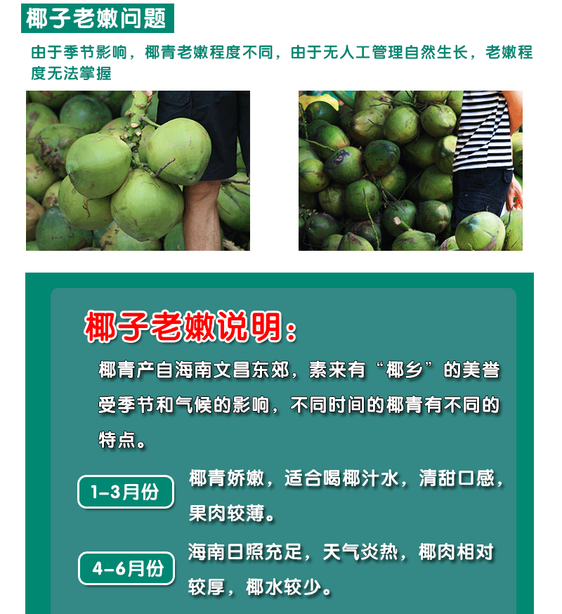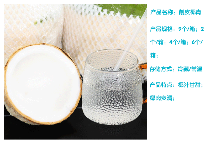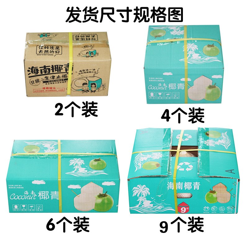 Упаковка из 2 штук (один кокос, примерно 1.0kg, очищенный); Пакет из 4 (кожура кокоса около 2 кг на фрукт); Пакет из 6 (кожура кокоса около 2 кг на фрукт); Пакет из 9 (кожура кокоса около 2 кг на фрукт)