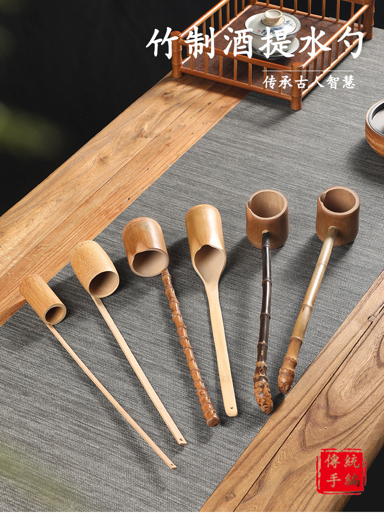 Ручной Работы Натуральный Бамбук Длинная Ручка Винная Ложка Бамбук Винный Рычаг Винная Ложка Винный Подъем Винный сосуд Винная Сосуд Винная Ложка Совок Воды