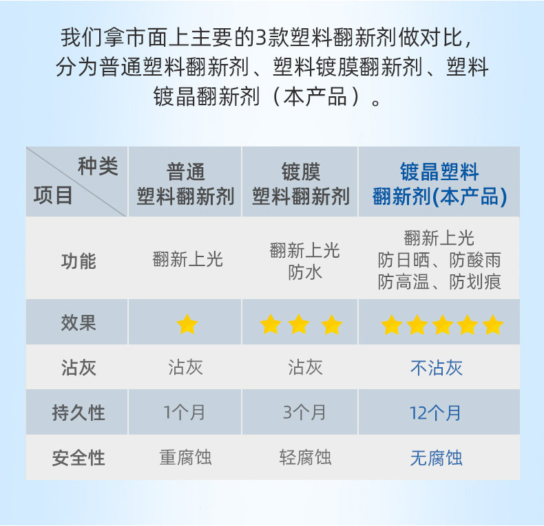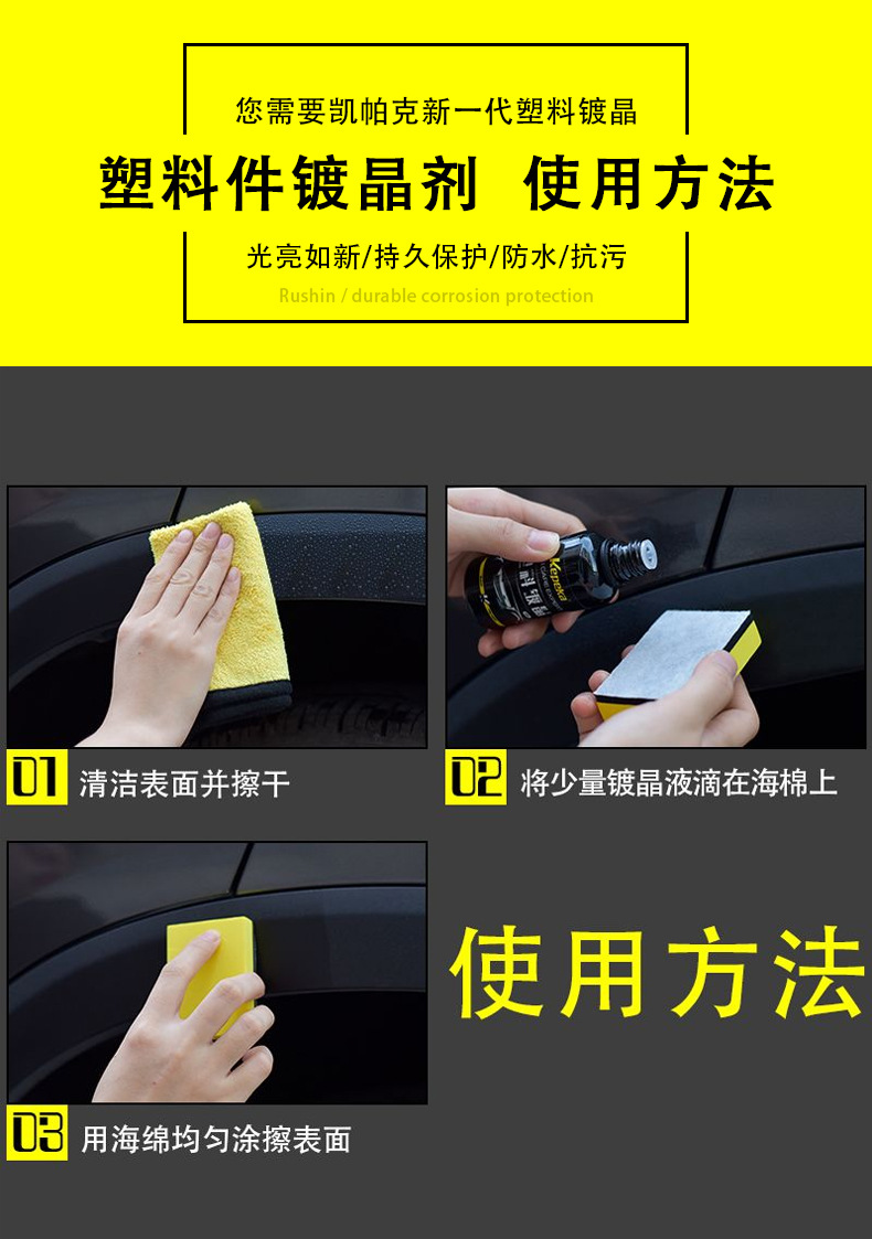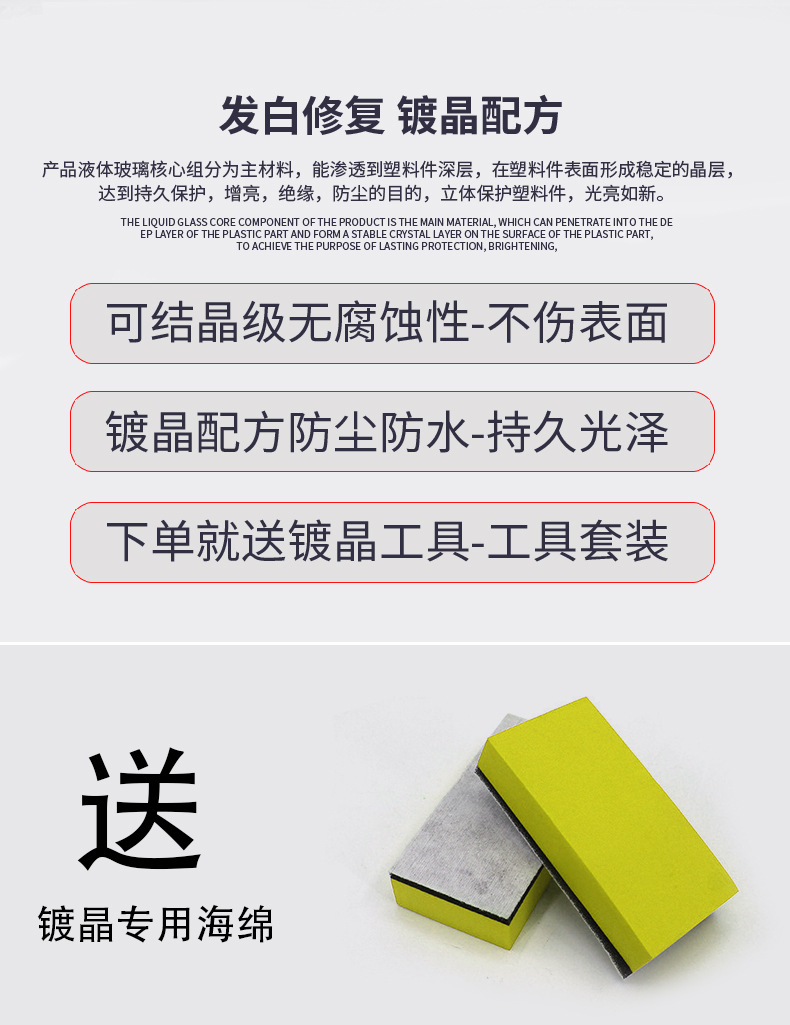 Автомобильные пластиковые детали Кристаллическое покрытие агент по ремонту окислительно-восстановительный агент черный бампер Беловатое старение обслуживание черная технология