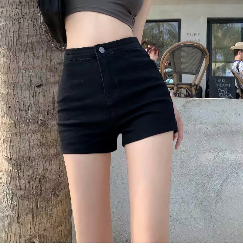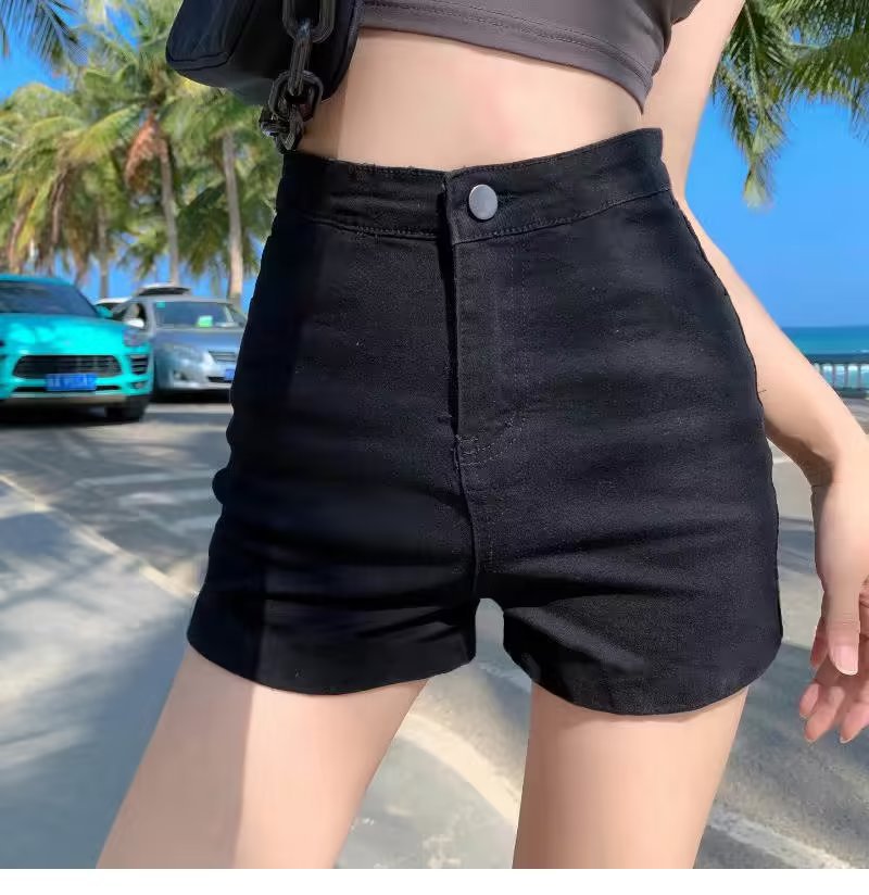 Джинсовые шорты Женские A-образные брюки Облегающие летние с высокой талией, стройнящие брюки в стиле специй для девочек, верхняя одежда, прямые эластичные шорты на бедрах