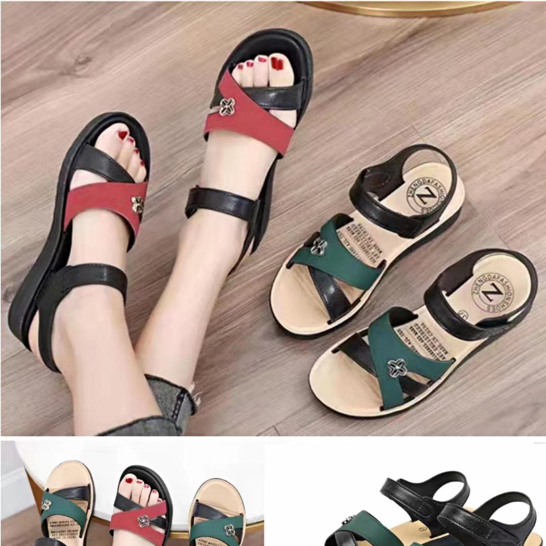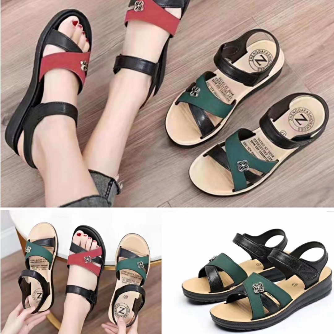 Новые летние модные женские сандалии на танкетке для женщин среднего и пожилого возраста, нескользящая износостойкая верхняя одежда, дышащая обувь для мам на платформе оптом