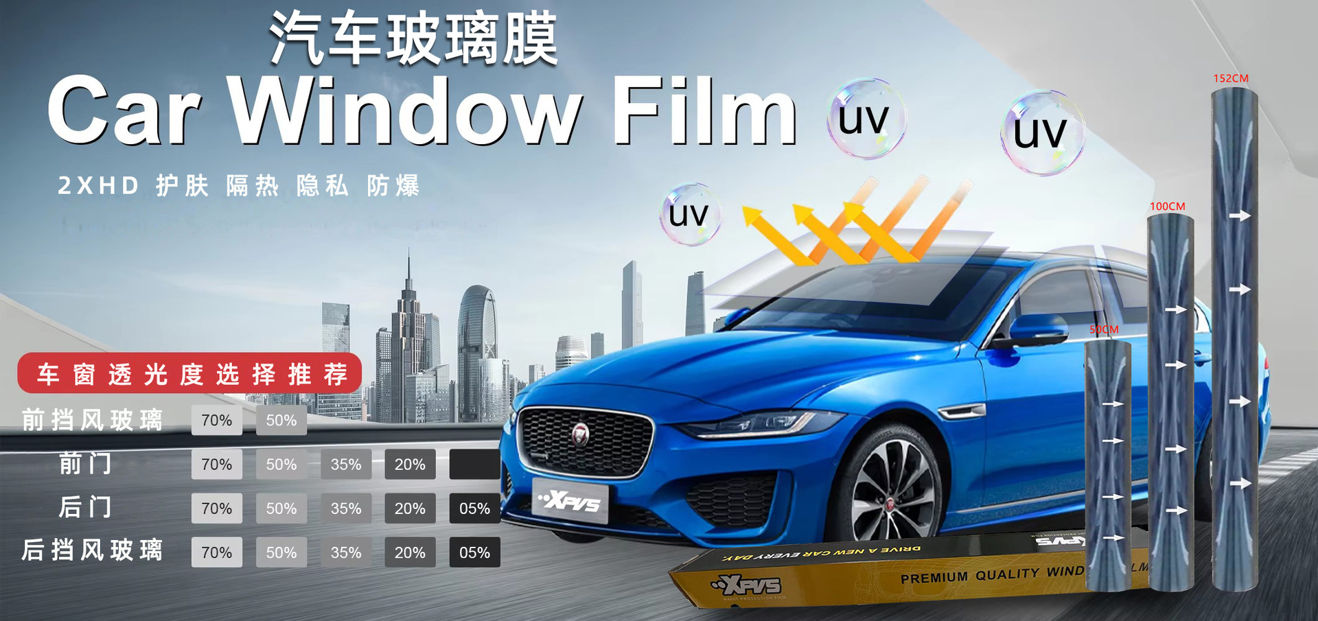 汽车玻璃膜5G超高清氮化钛高隔热陶瓷膜太阳膜防爆膜防晒膜隐私膜