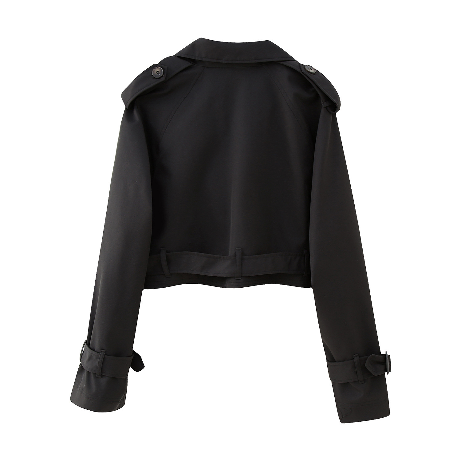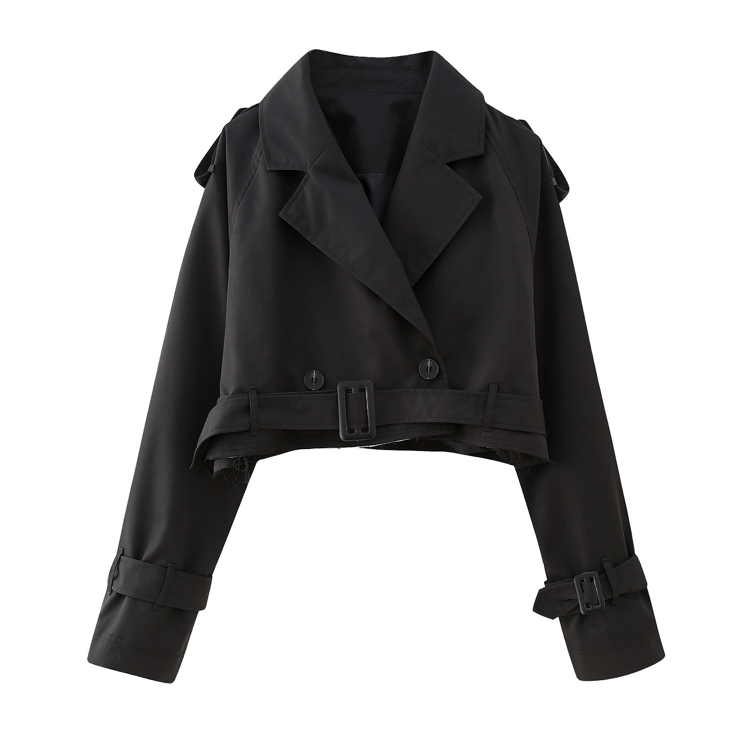 2023 Весна и осень 2023 новая трансграничная Женская одежда в европейском и американском стиле, короткое повседневное пальто с длинным рукавом и поясом