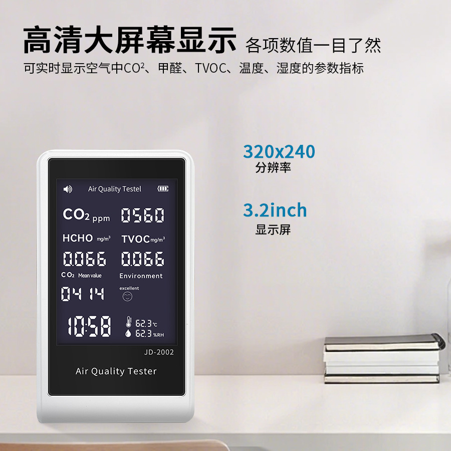Прямые поставки с завода: Умный детектор формальдегида JD-2002 для дома, многофункциональный прибор для измерения качества воздуха и CO2.