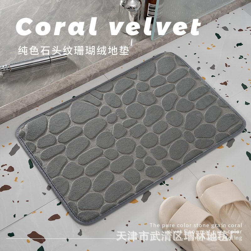 Фабрика прямые волосы коралловый флис коврик каменный узор тисненый однотонный дверной коврик галька текстура ванная комната абсорбирующий коврик оптом