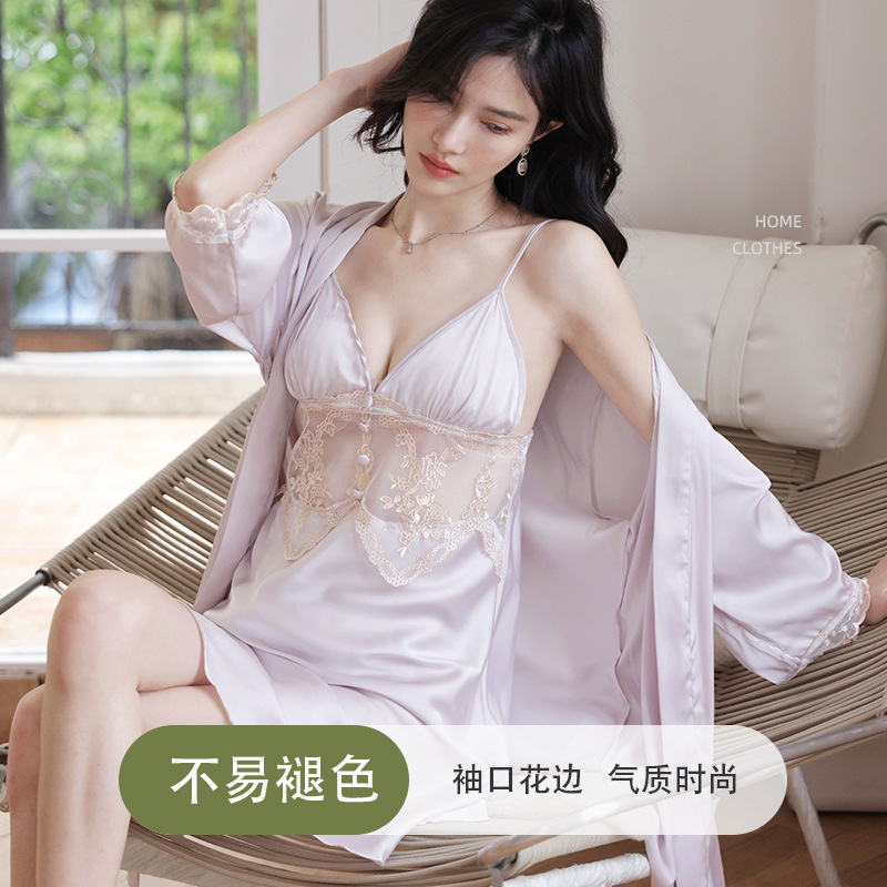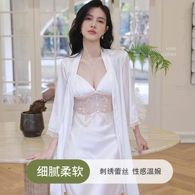 Индивидуальный заказ: Новинка сезона Весна/Лето 2024 – Комплект из двух предметов: ночная сорочка с подушечками для груди и бретелями, женская домашняя одежда, сатиновая сексуальная пижама