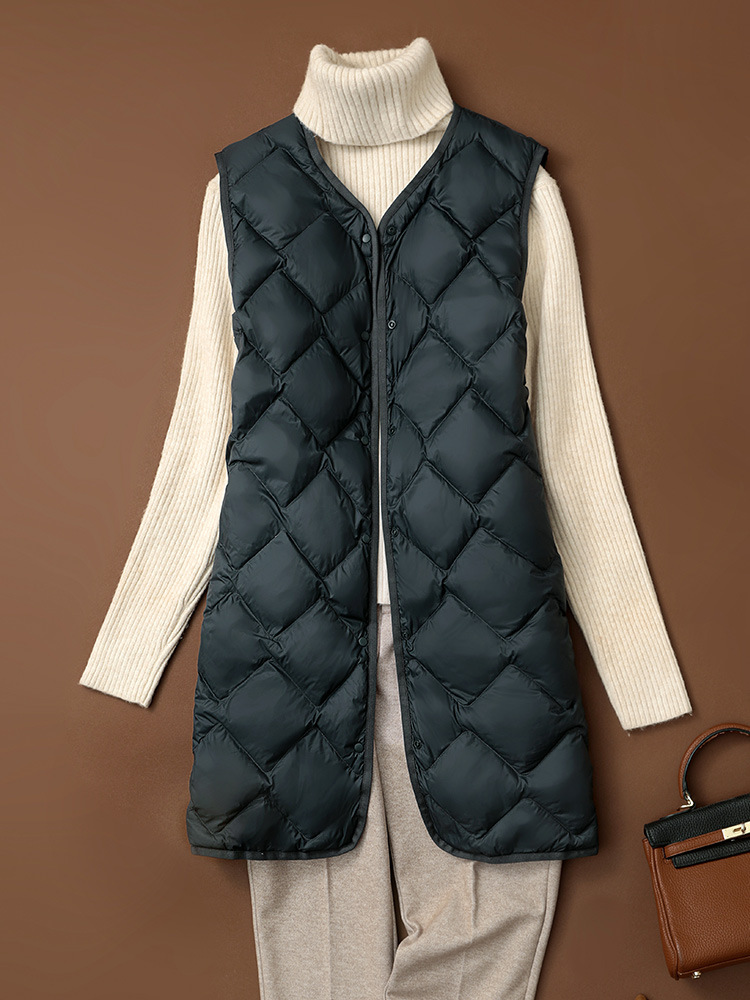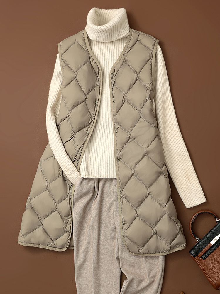 Легкий пуховик через границу, женский осенне-зимний жилет средней длины с V-образным вырезом, легкий пуховик, спортивный жилет больших размеров