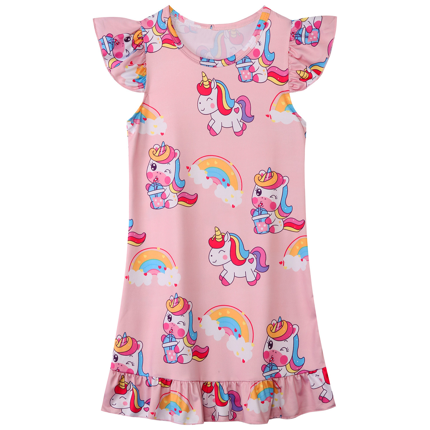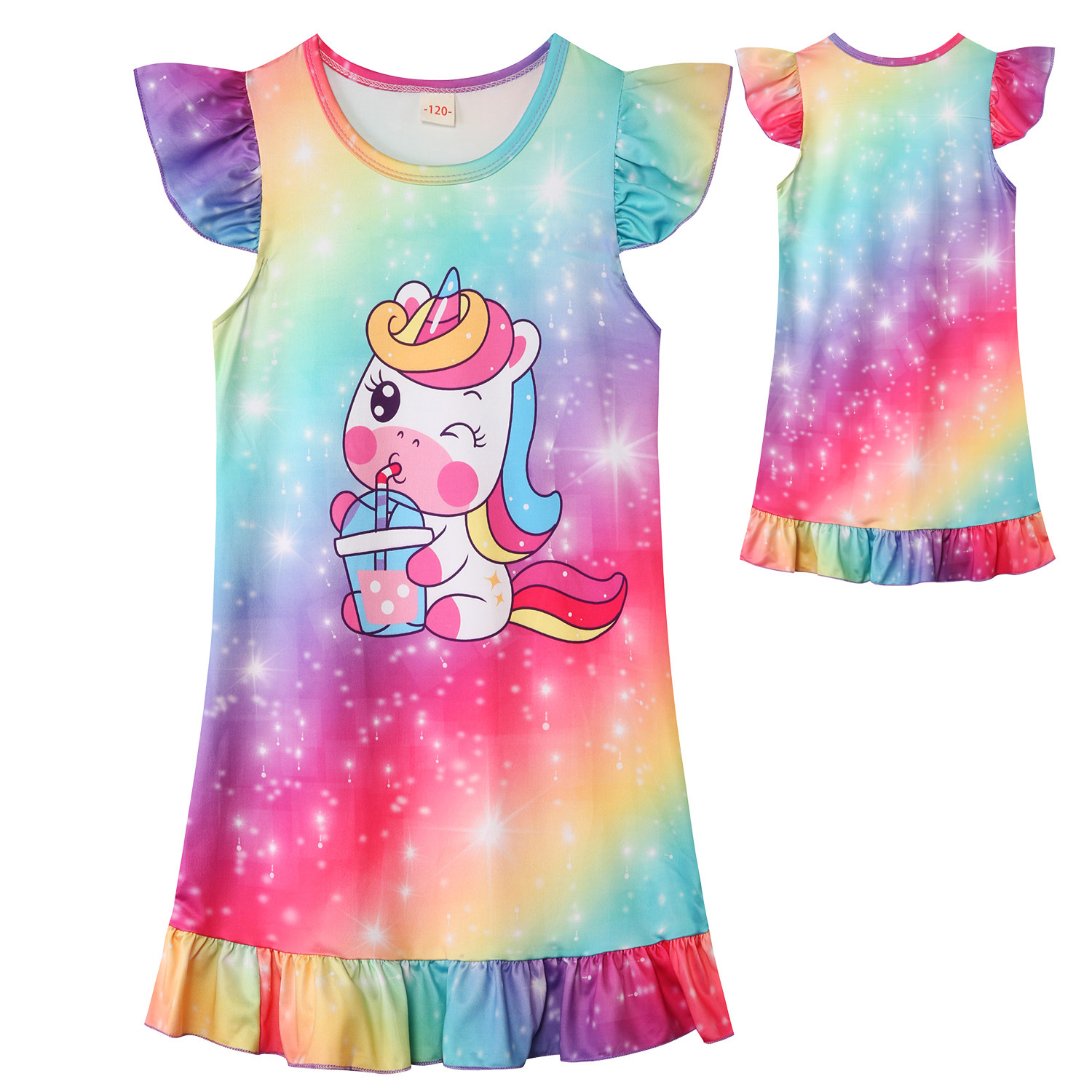 Пижама с единорогом для девочек, летнее платье, Детская домашняя одежда с короткими рукавами, Детская ночная рубашка