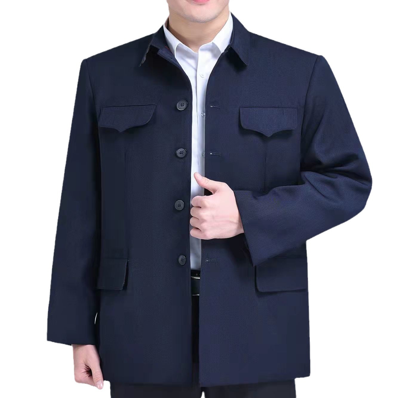 Простая версия костюма Чжуншань тонкая средняя и пожилая кардиган куртка с темным карманом