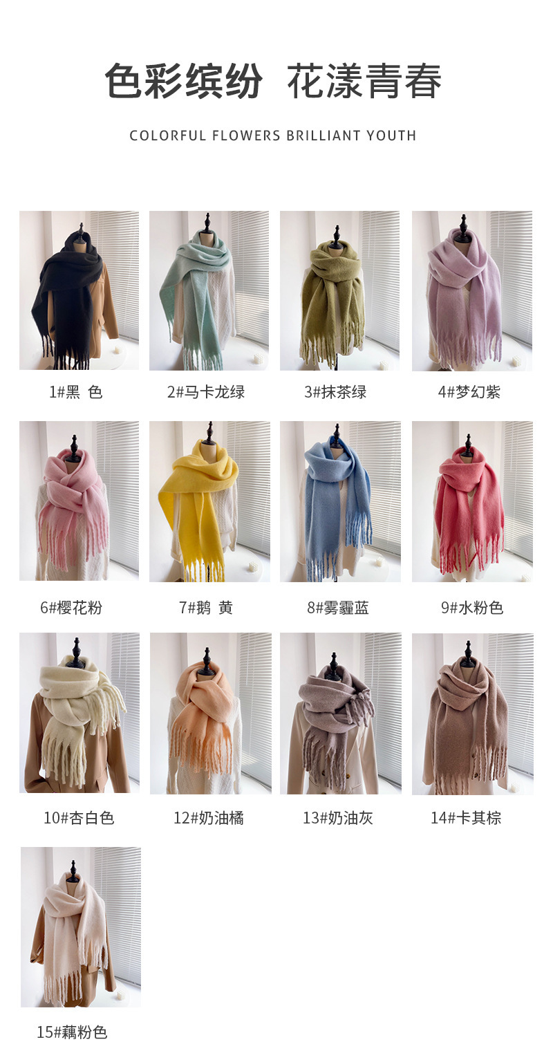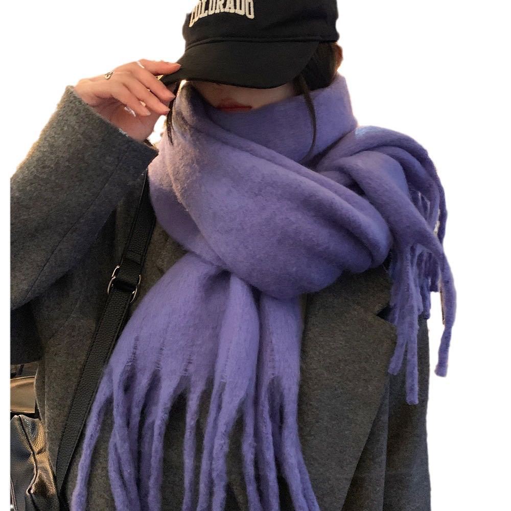 Зимний монохромный плюшевый тяжелый мягкий пушистый ленивый ветер однотонный большой шерстяной Теплый шарф для студенческой пары