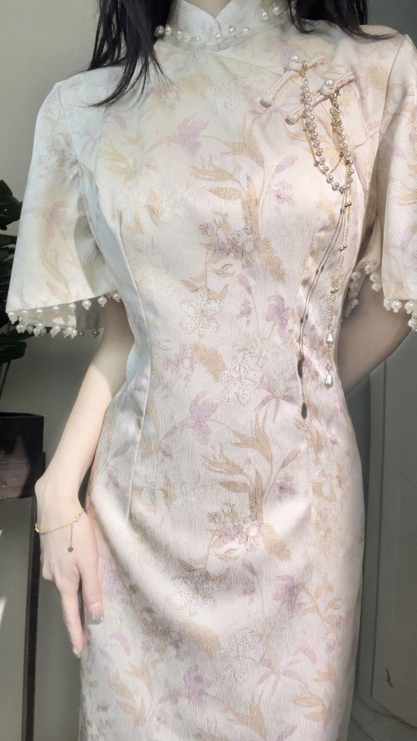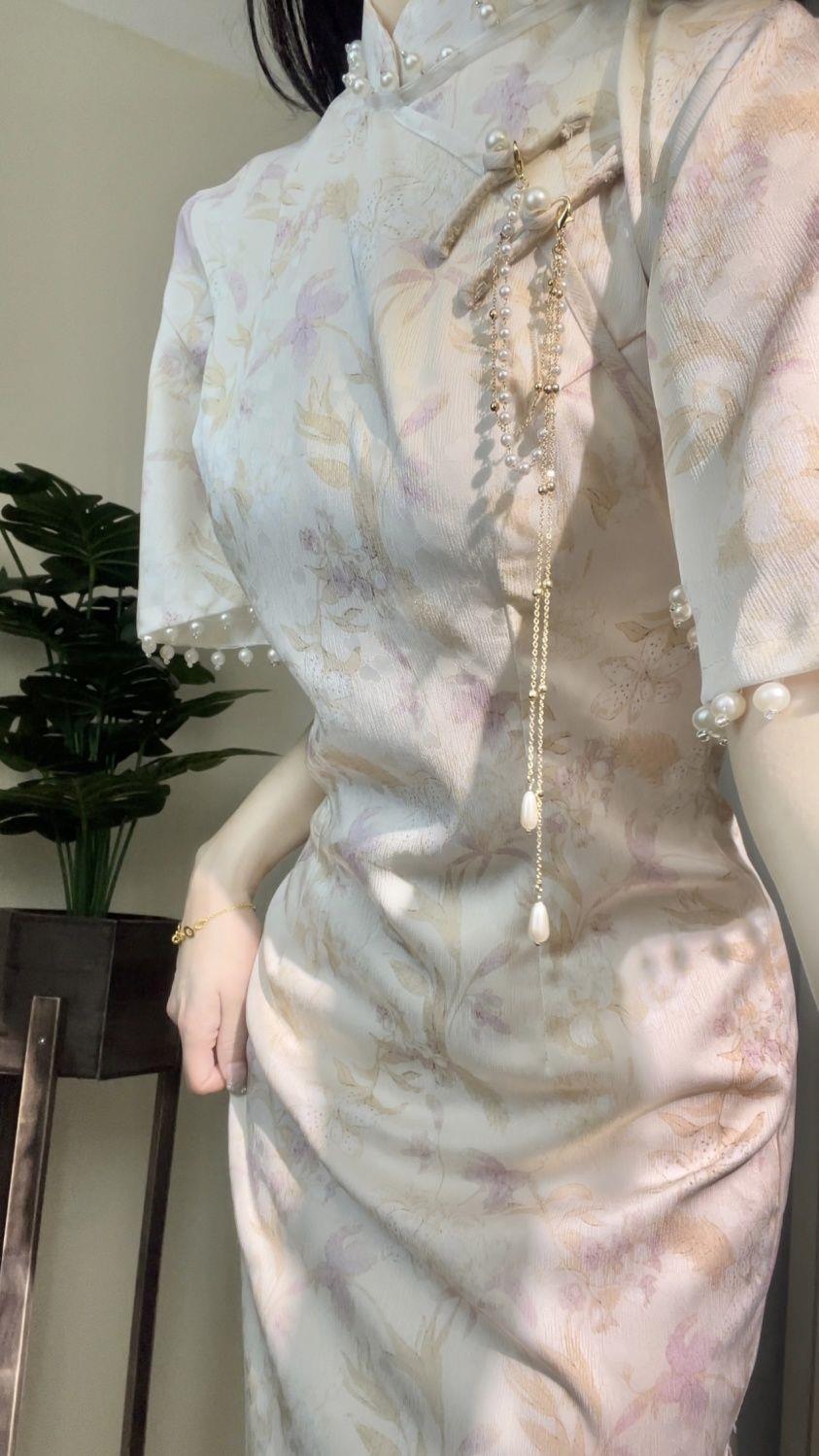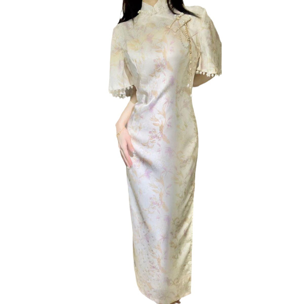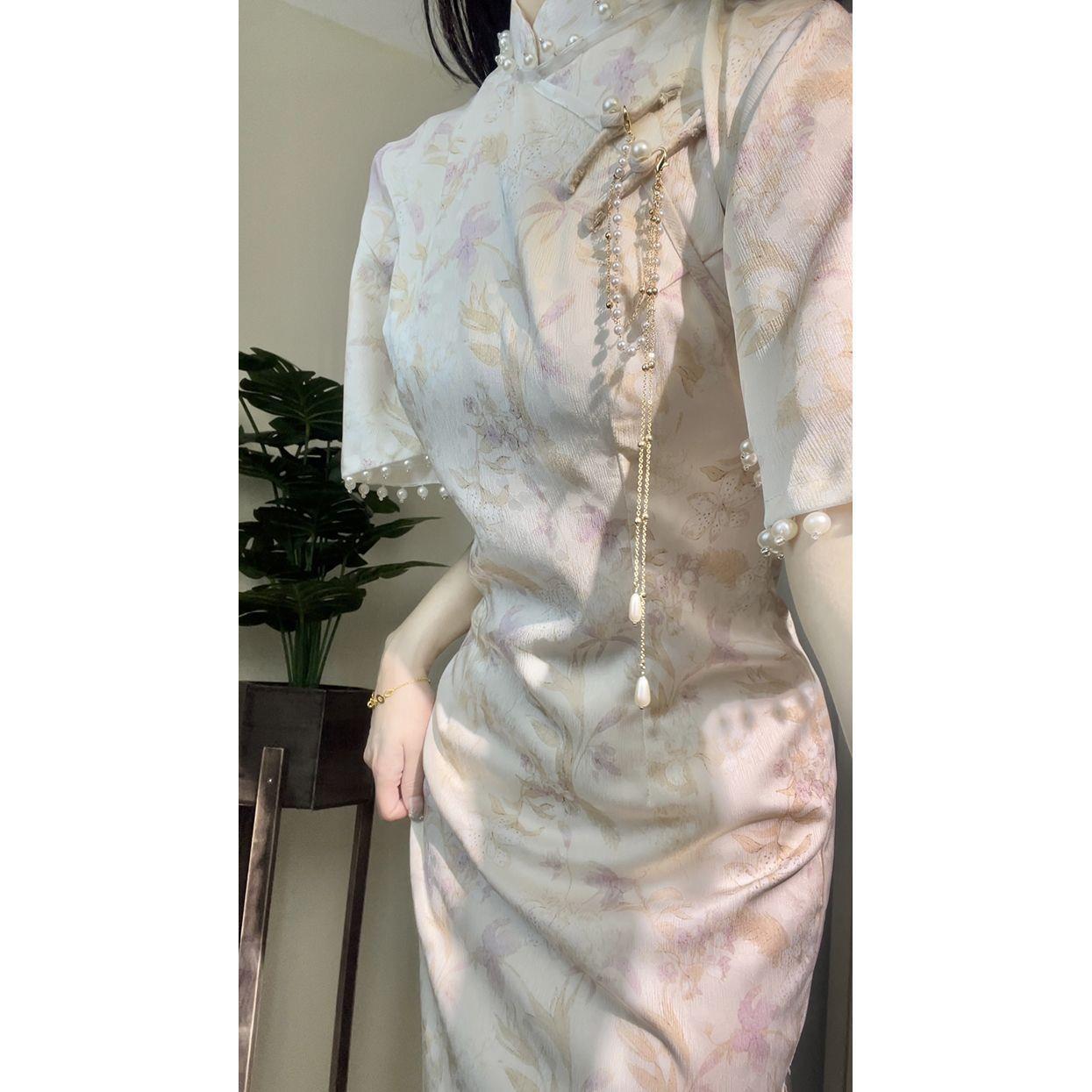Новый Cheongsam в стиле шинуазри, новинка 2024, улучшенное летнее элитное элегантное платье для молодых длинных девушек, элегантное