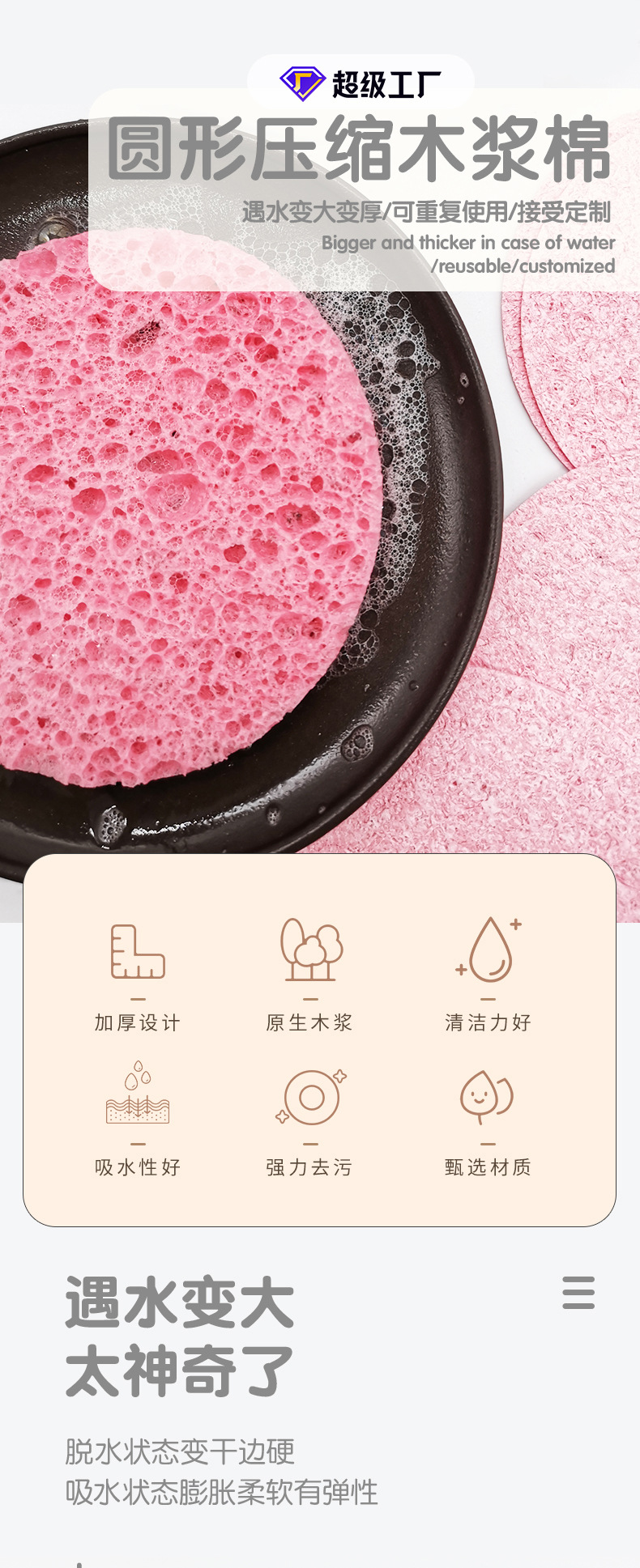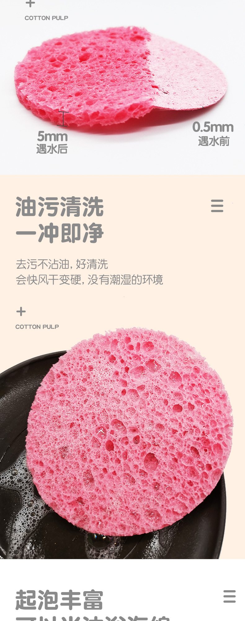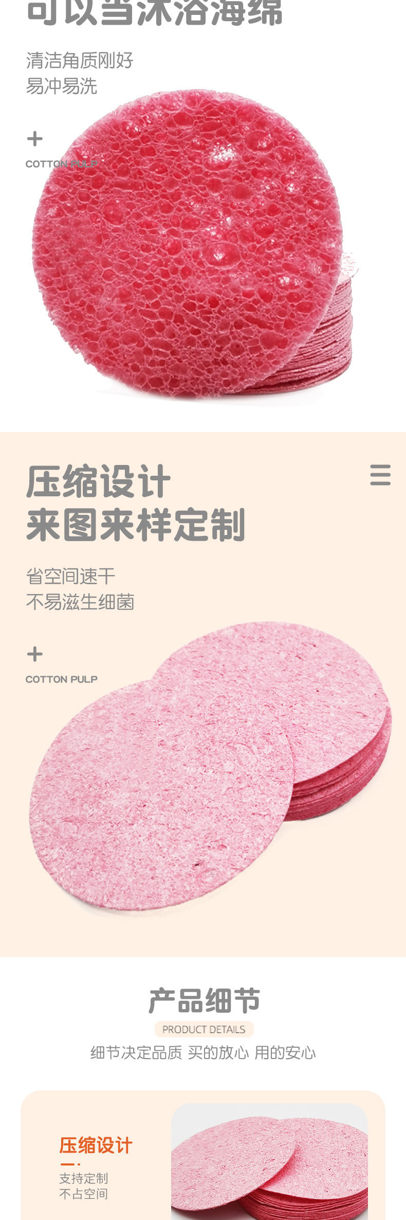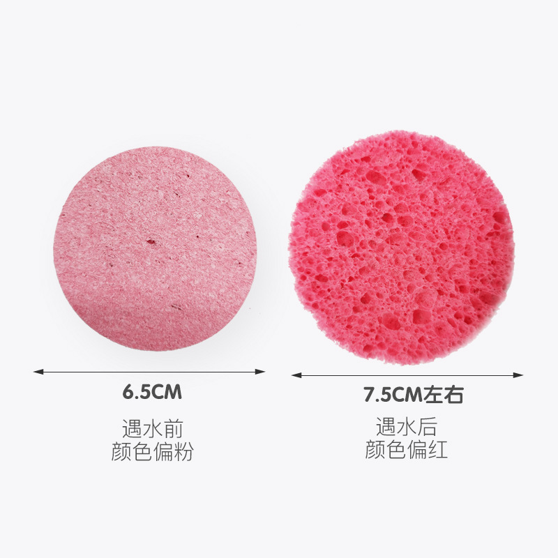 Натуральная древесная масса Хлопок Мытье лица Розовая сжатая губка для снятия макияжа Увеличивает воду Очищающая очищающая и отшелушивающая губка Pounce