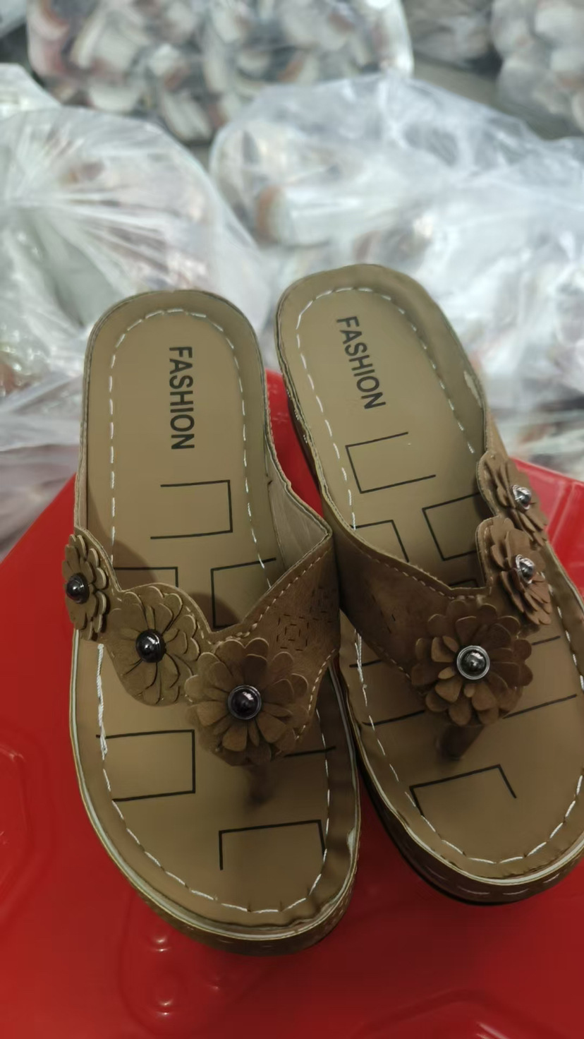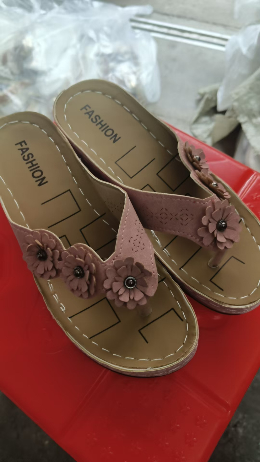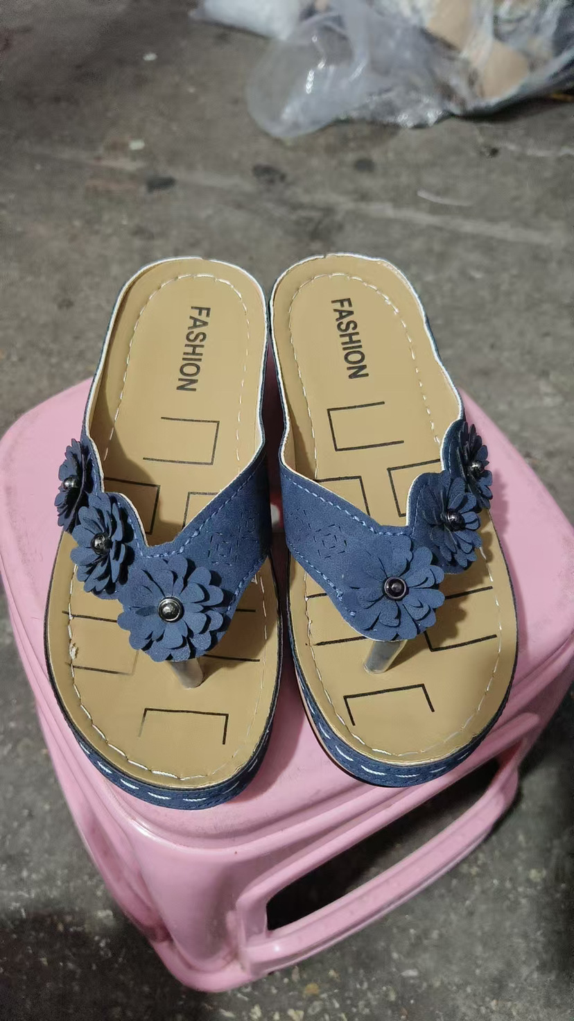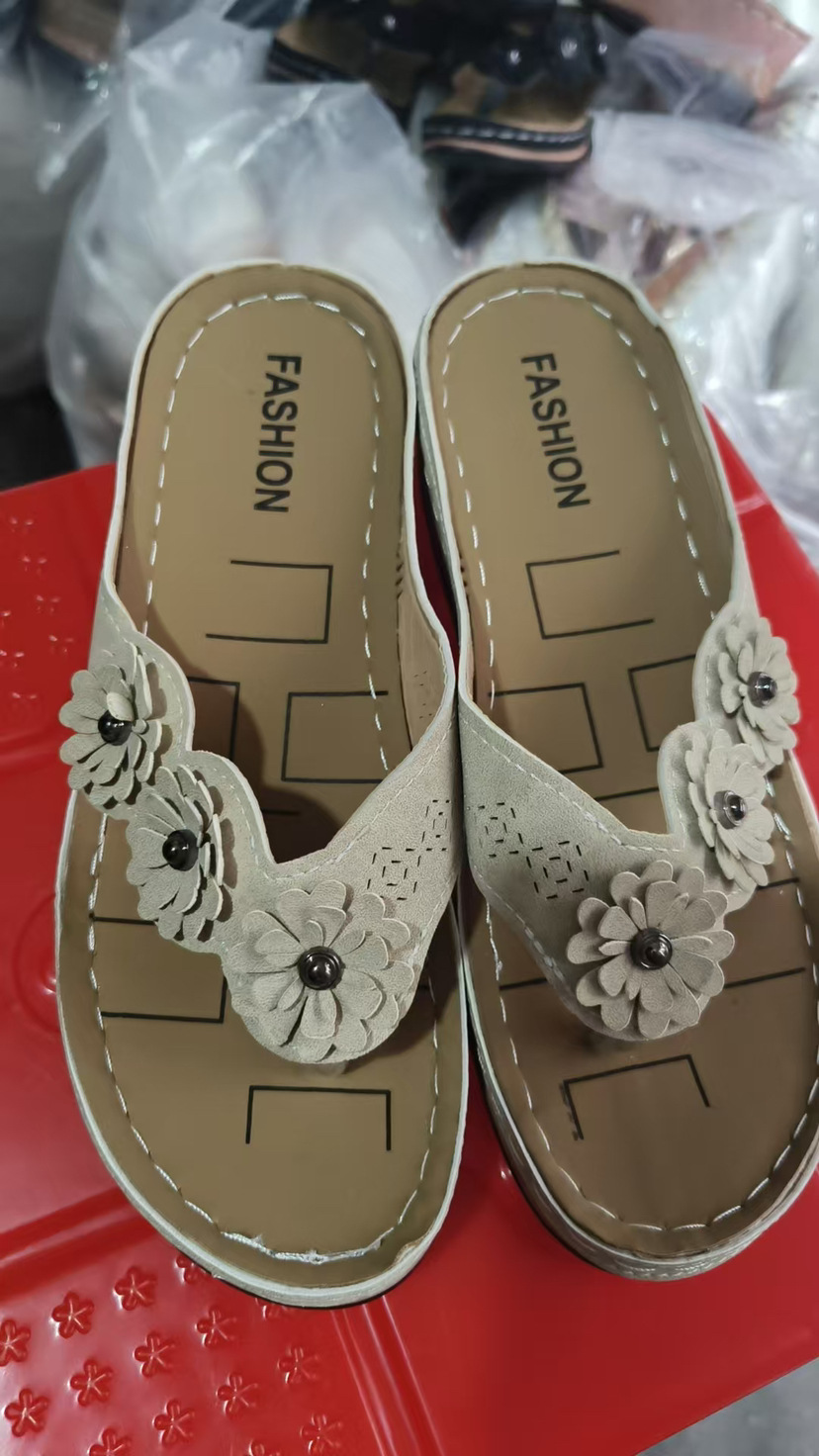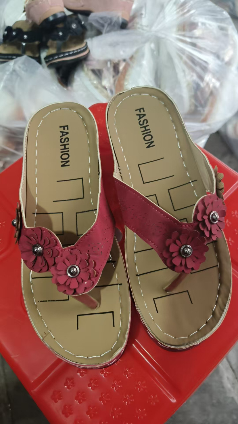 Внешняя торговля 2023 Летние Новые цветочные сандалии Автомобильная линия Толстые тапочки Ретро пляжные шлепанцы