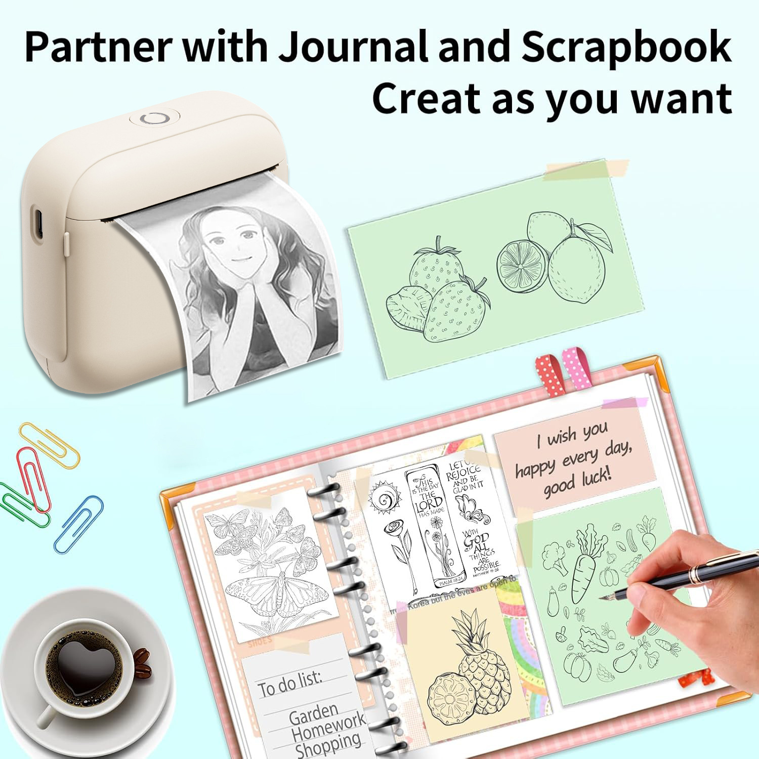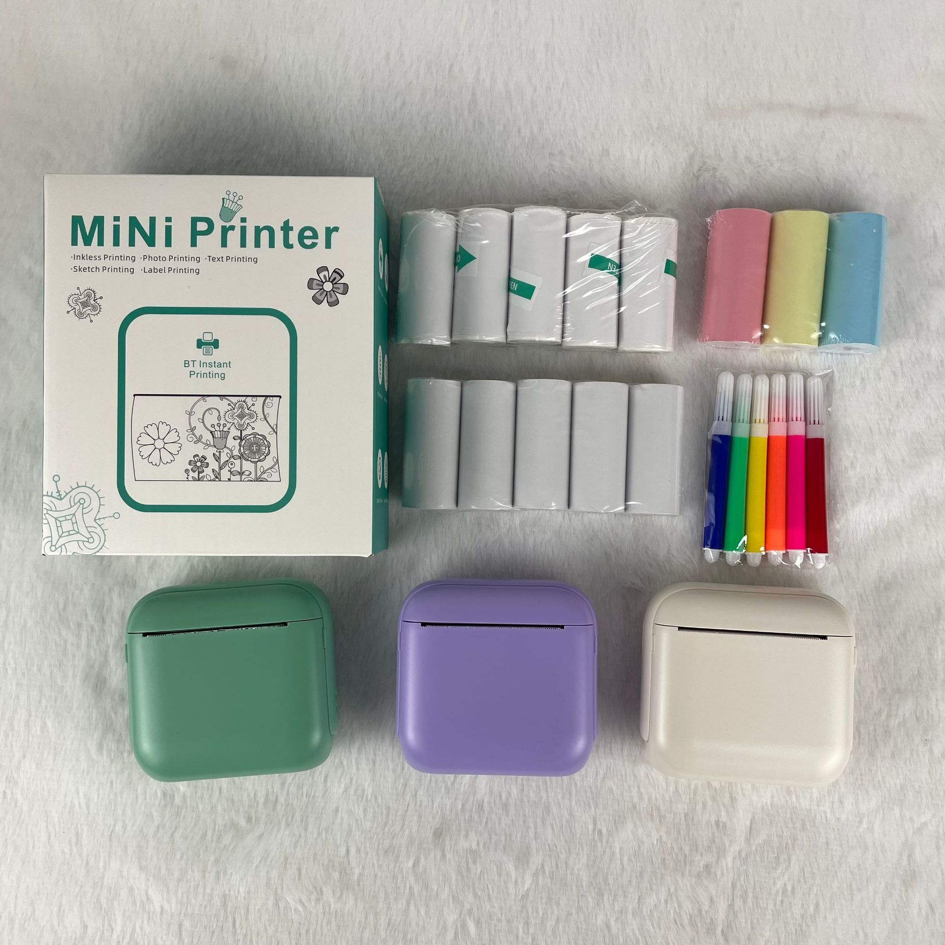 另配明细:热敏纸*5,可粘贴热敏纸*5,彩色纸(蓝粉黄)*3,6支水彩笔