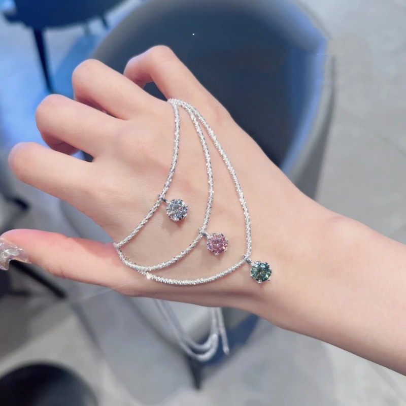 925 серебряное ожерелье из муассанита простая Мода четыре когтя Moisan ключица цепь Женская живая Горячая продажа оптовая продажа с фабрики