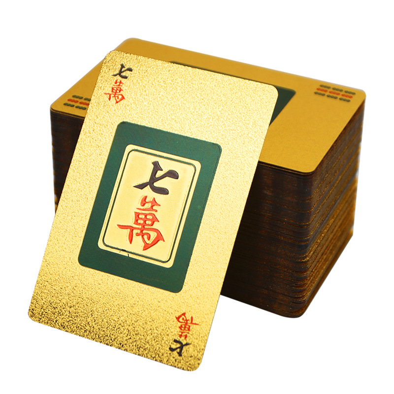 Матовое золото Фольга Золотой цвет маджонг игральные карты оптом ПЭТ пластик Мини маджонг портативный Открытый путешествия