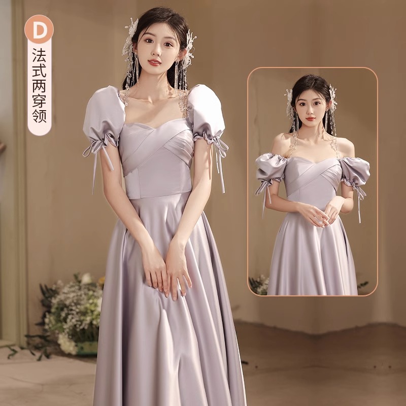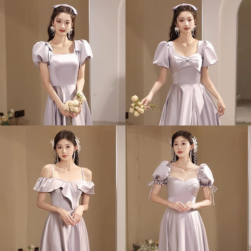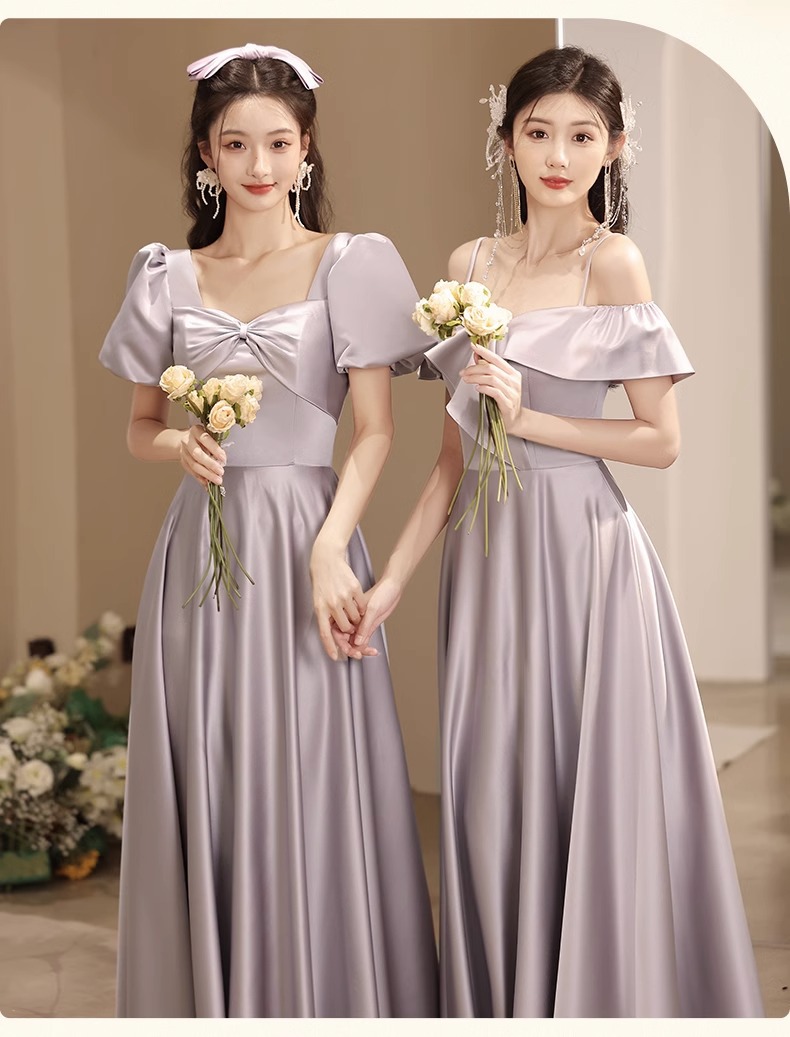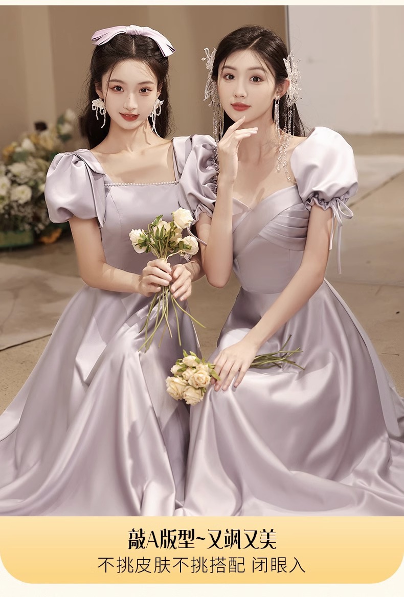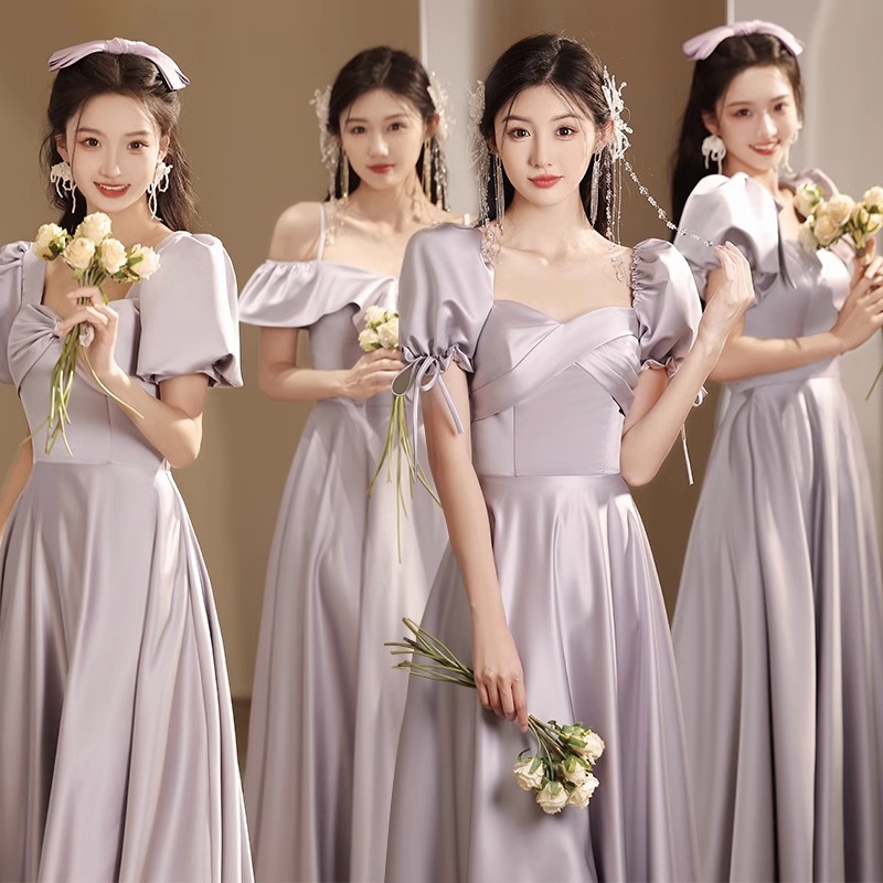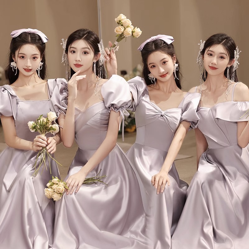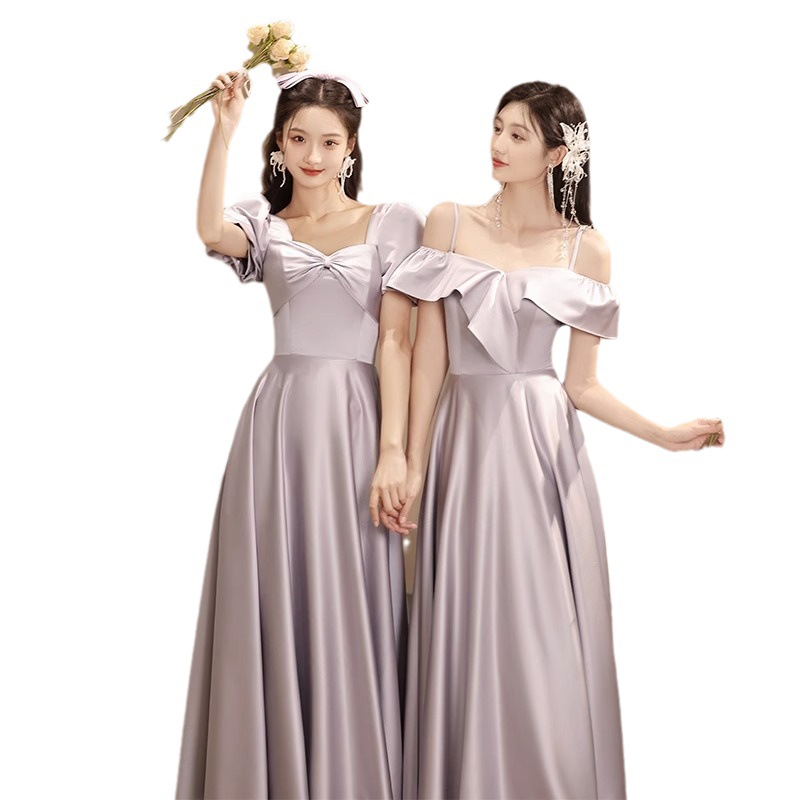 Платье подружки невесты 2024 новое летнее атласное высококачественное свадебное платье для сестер, женское серое фиолетовое платье для выступления хозяина