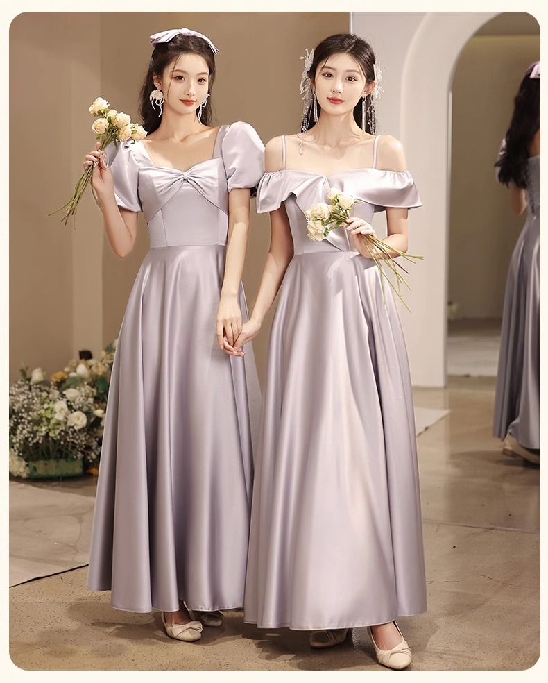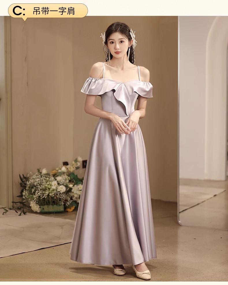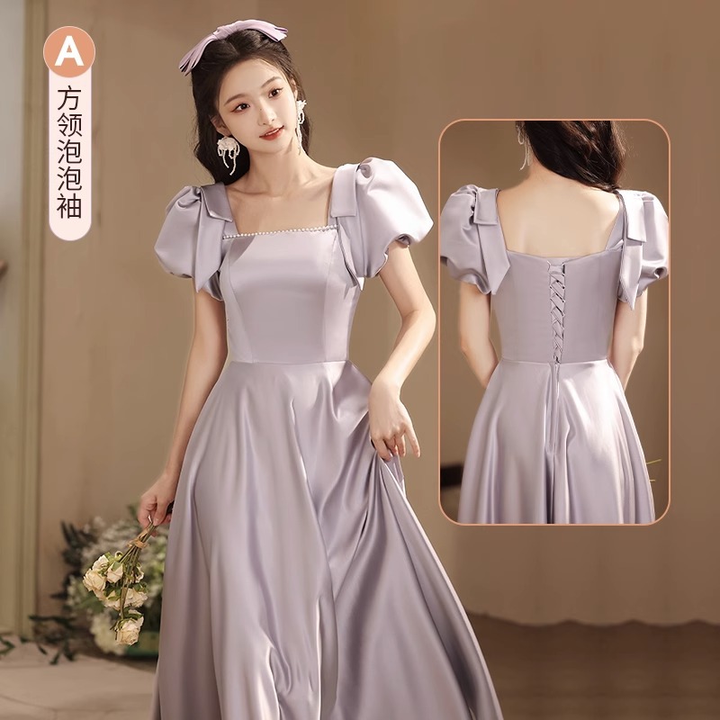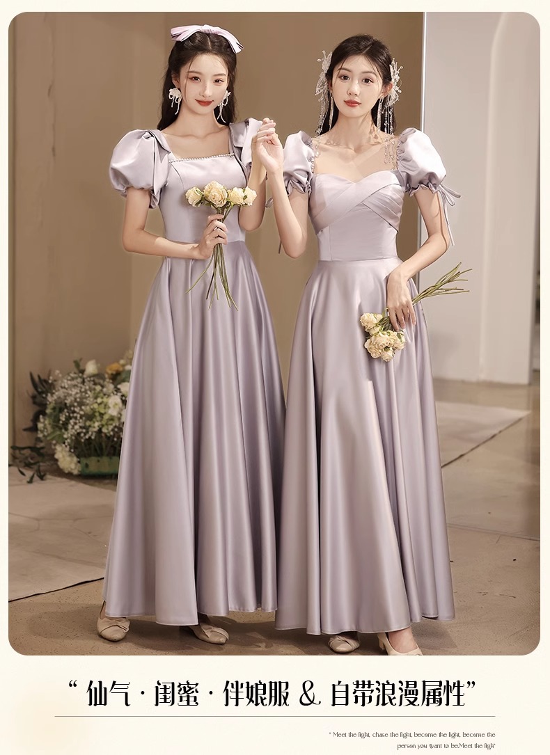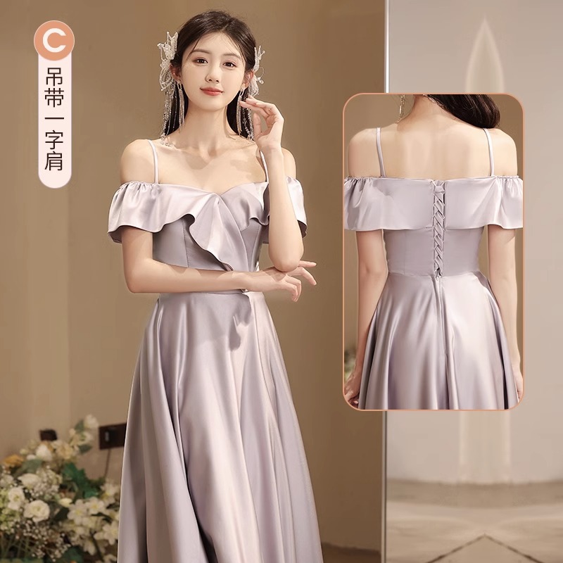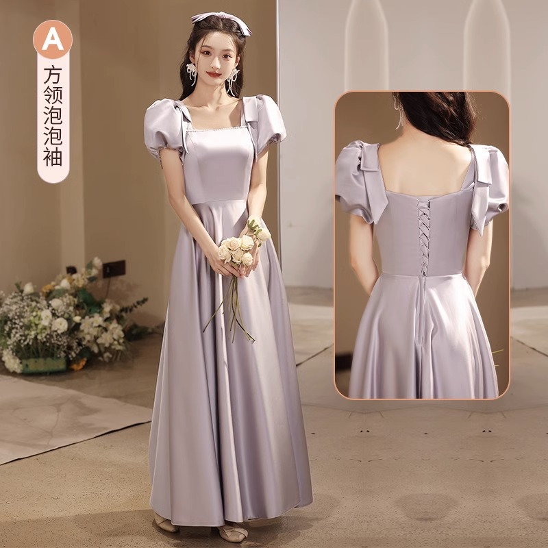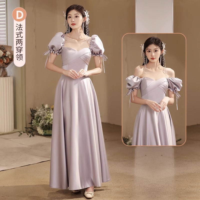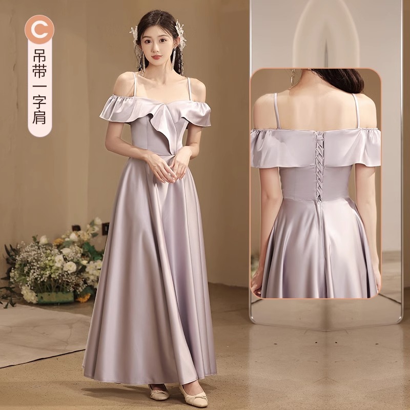 Платье подружки невесты 2024 новое летнее атласное высококачественное свадебное платье для сестер, женское серое фиолетовое платье для выступления хозяина