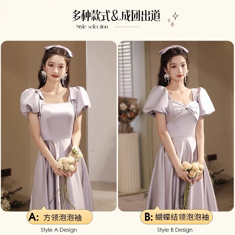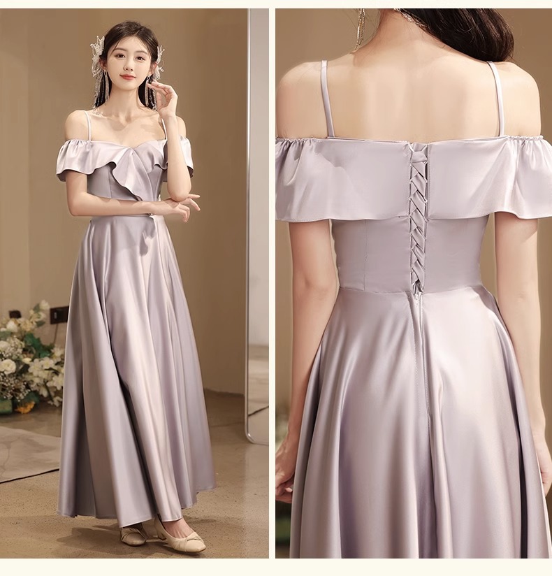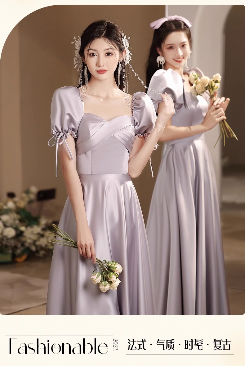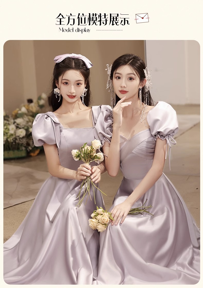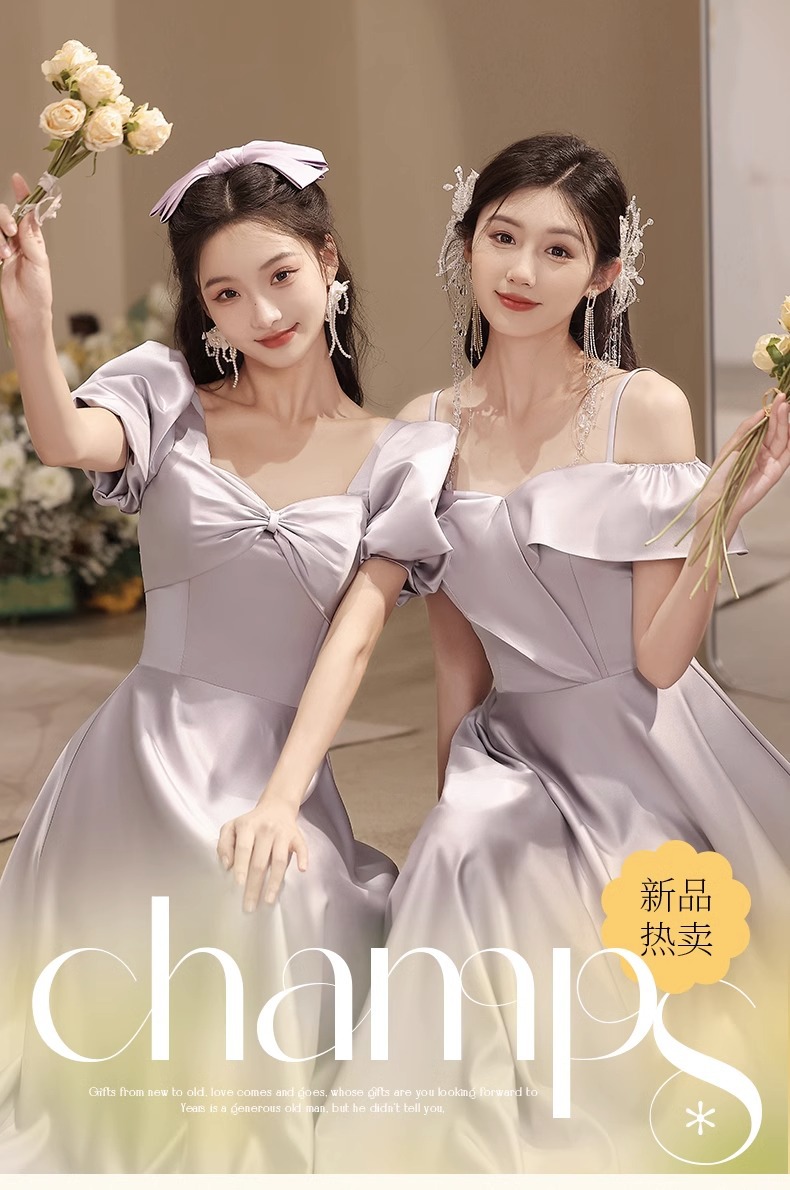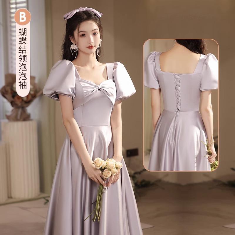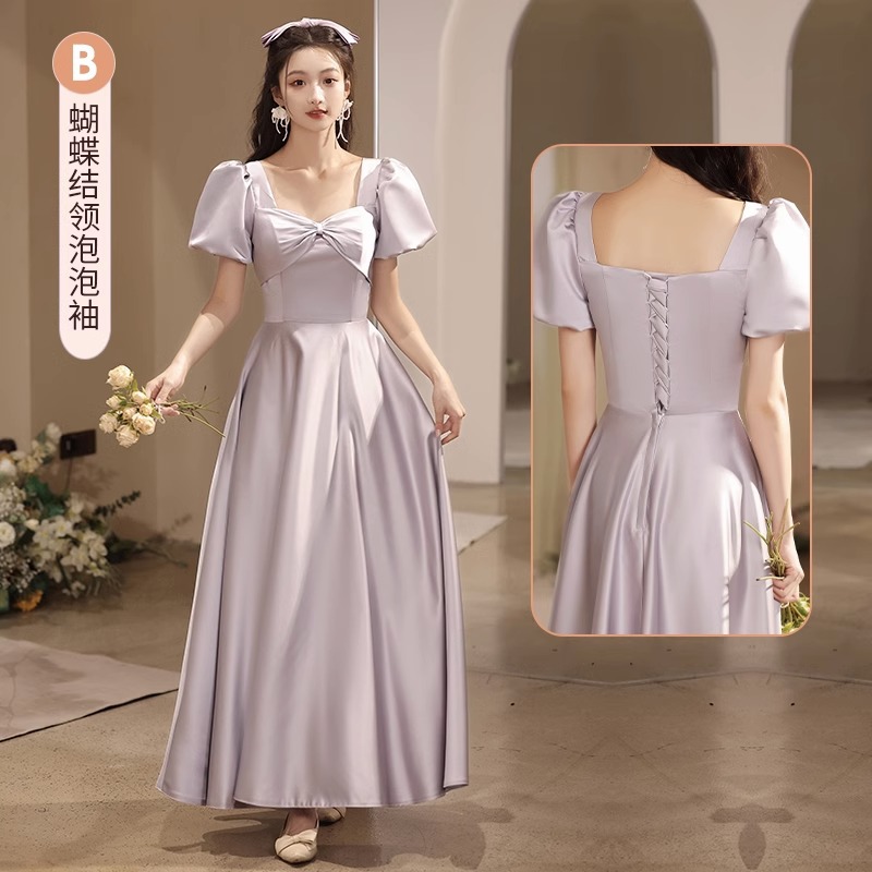 Платье подружки невесты 2024 новое летнее атласное высококачественное свадебное платье для сестер, женское серое фиолетовое платье для выступления хозяина