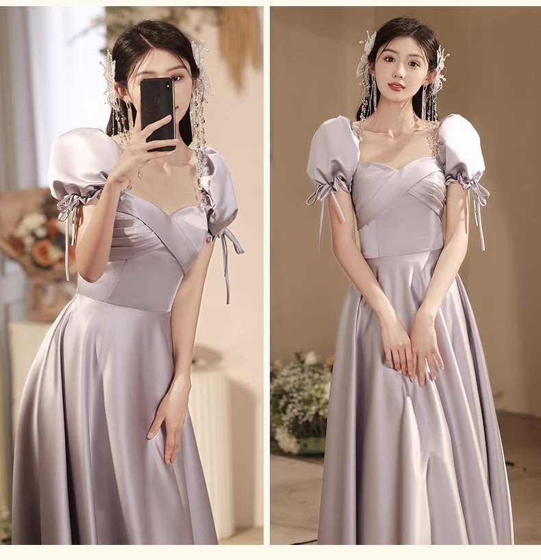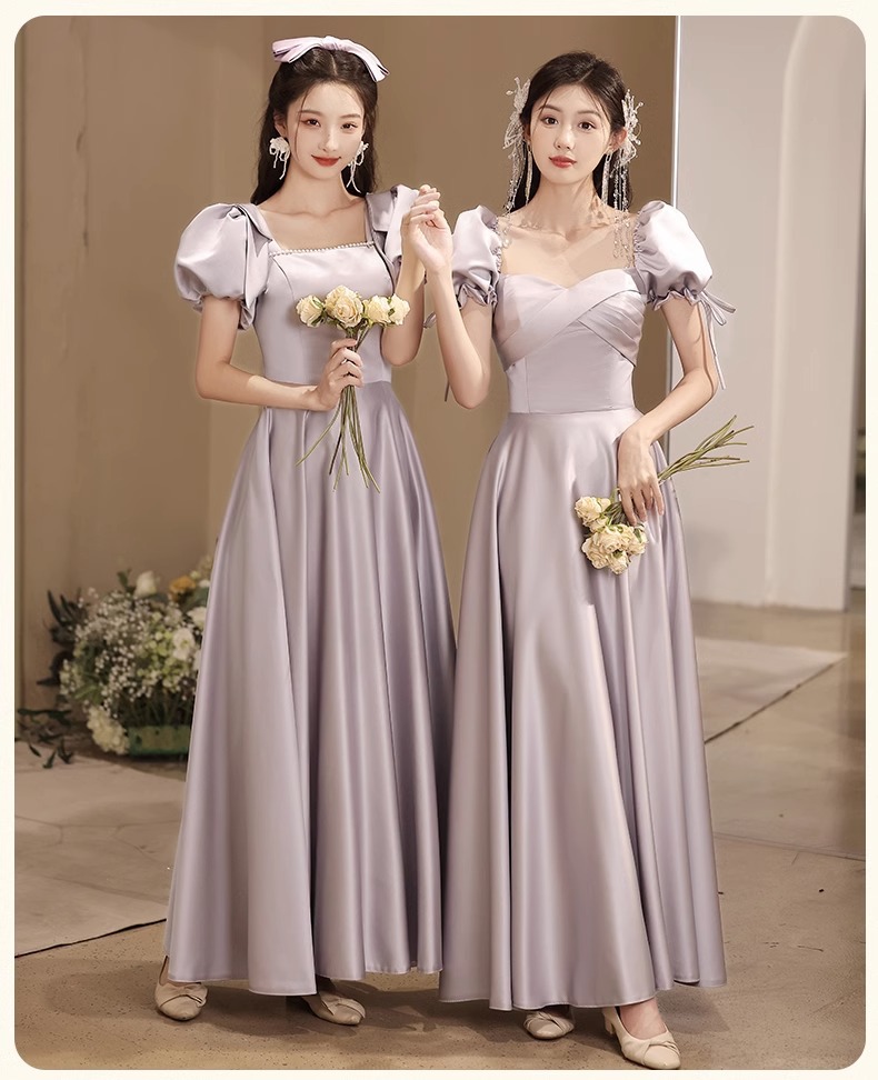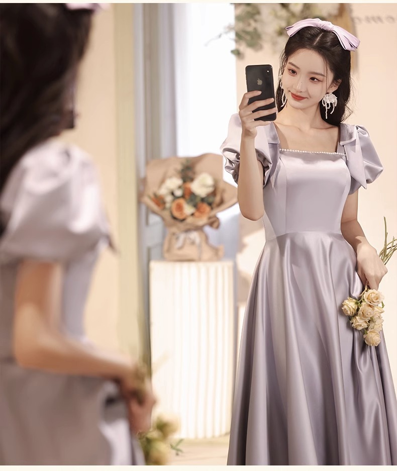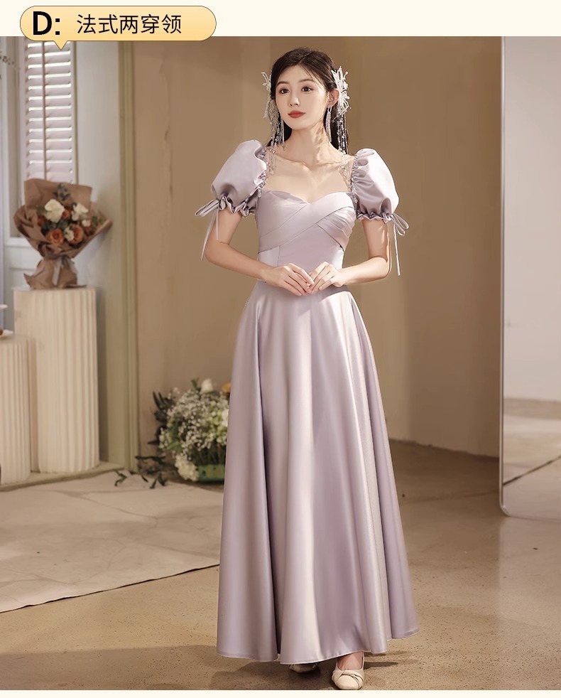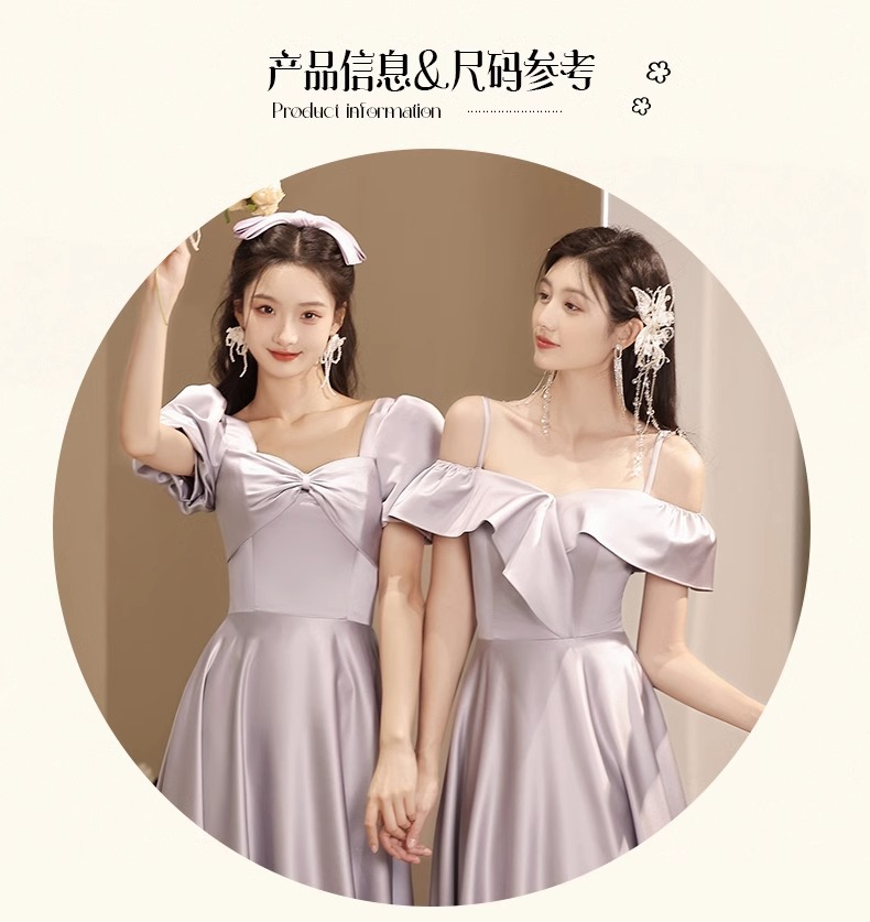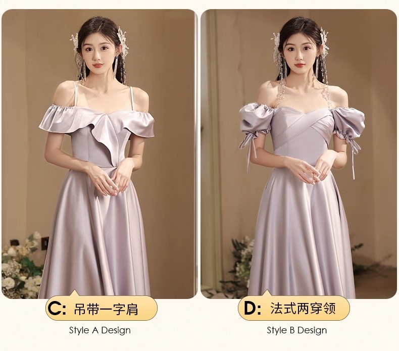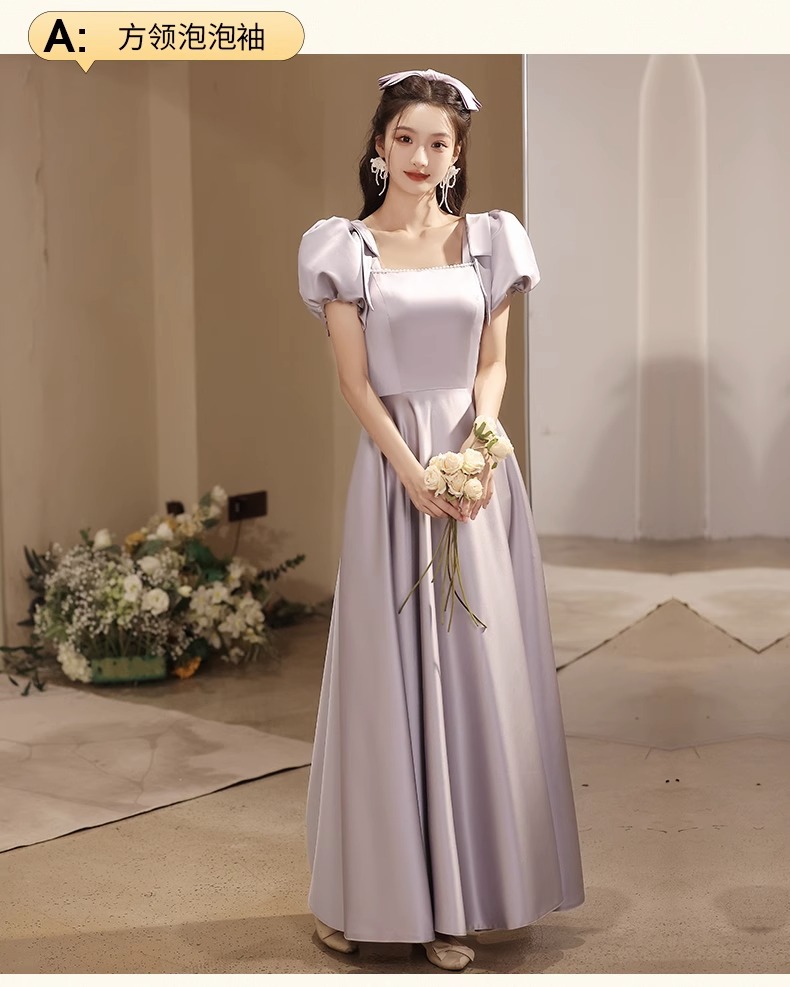 Платье подружки невесты 2024 новое летнее атласное высококачественное свадебное платье для сестер, женское серое фиолетовое платье для выступления хозяина