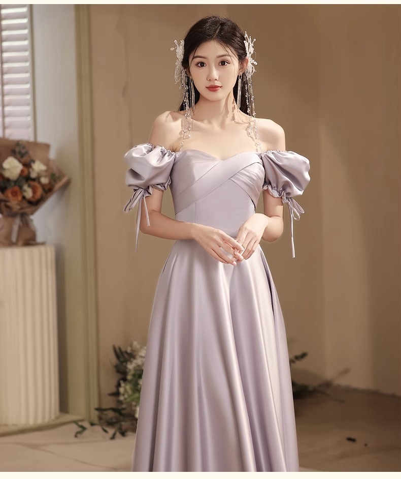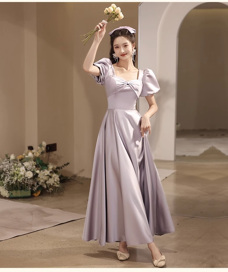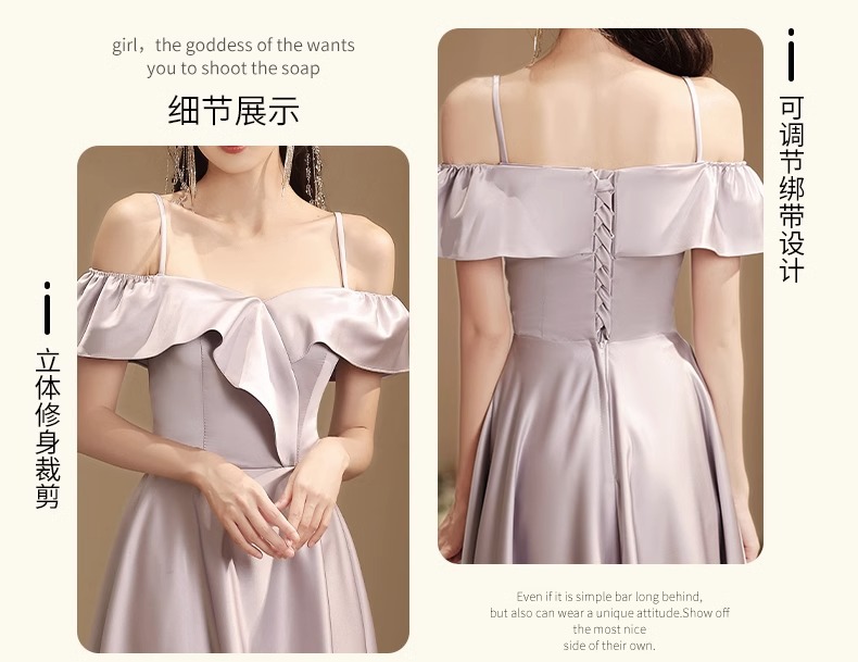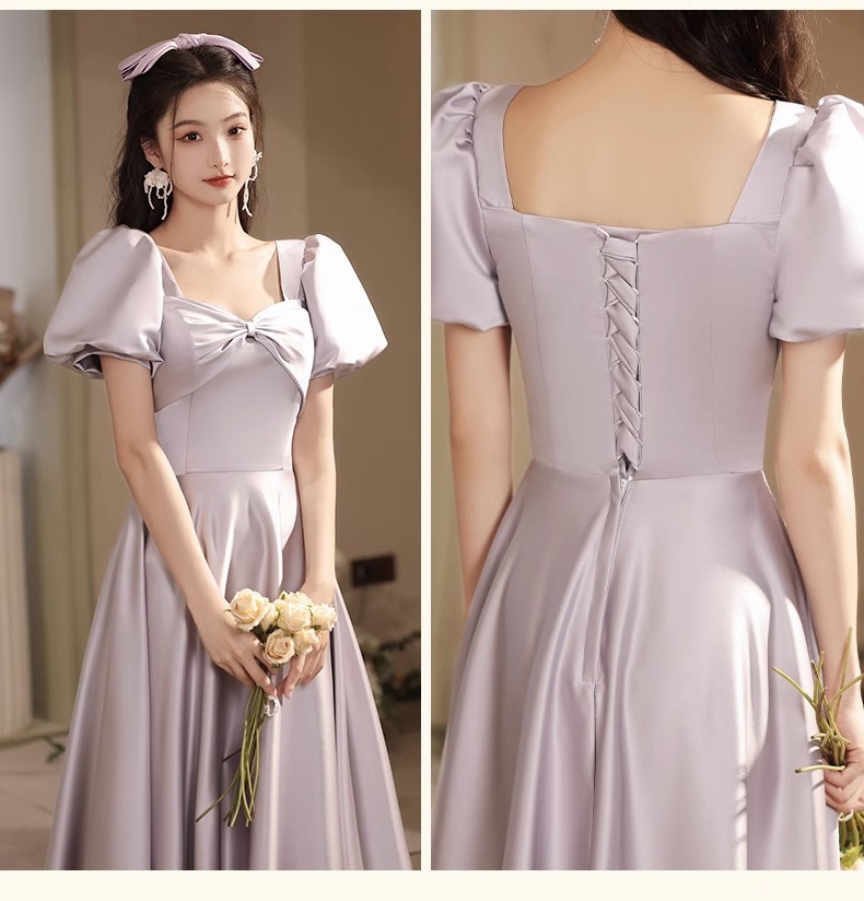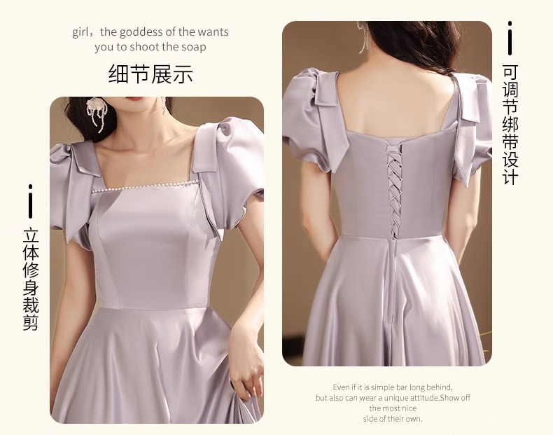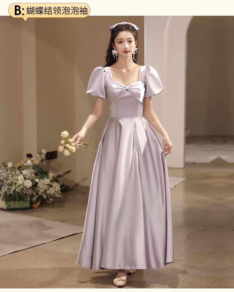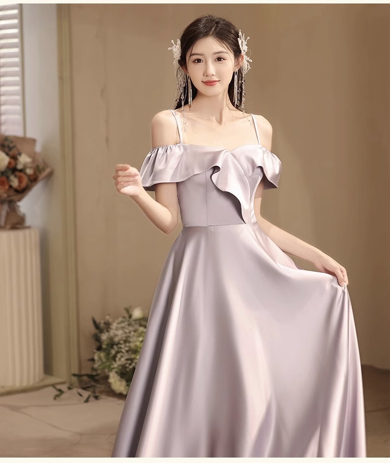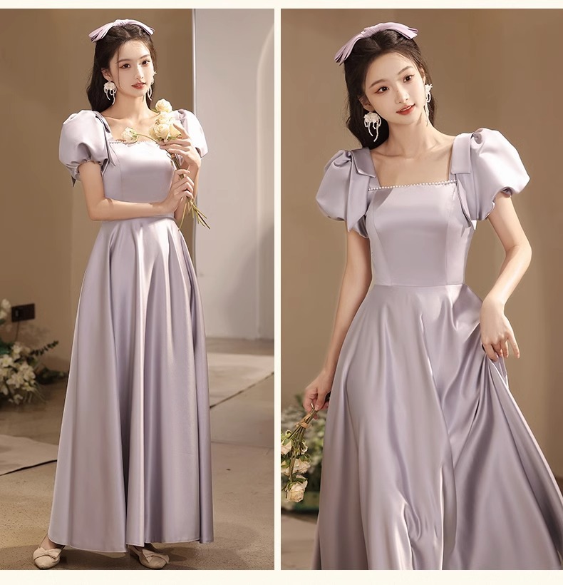 Платье подружки невесты 2024 новое летнее атласное высококачественное свадебное платье для сестер, женское серое фиолетовое платье для выступления хозяина