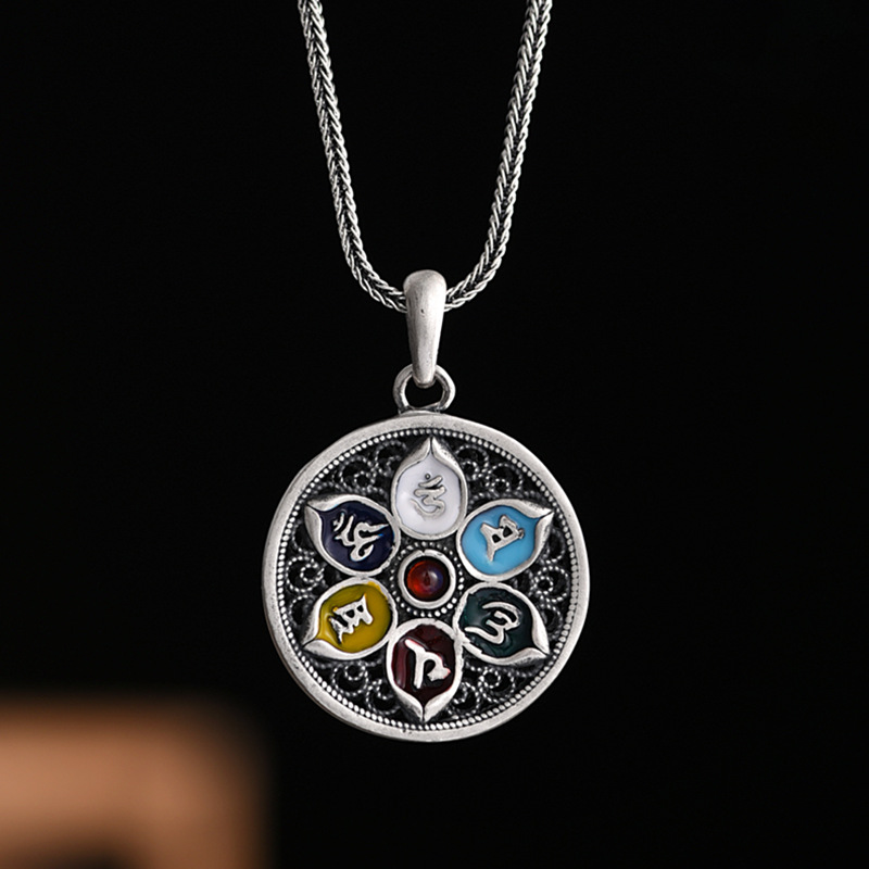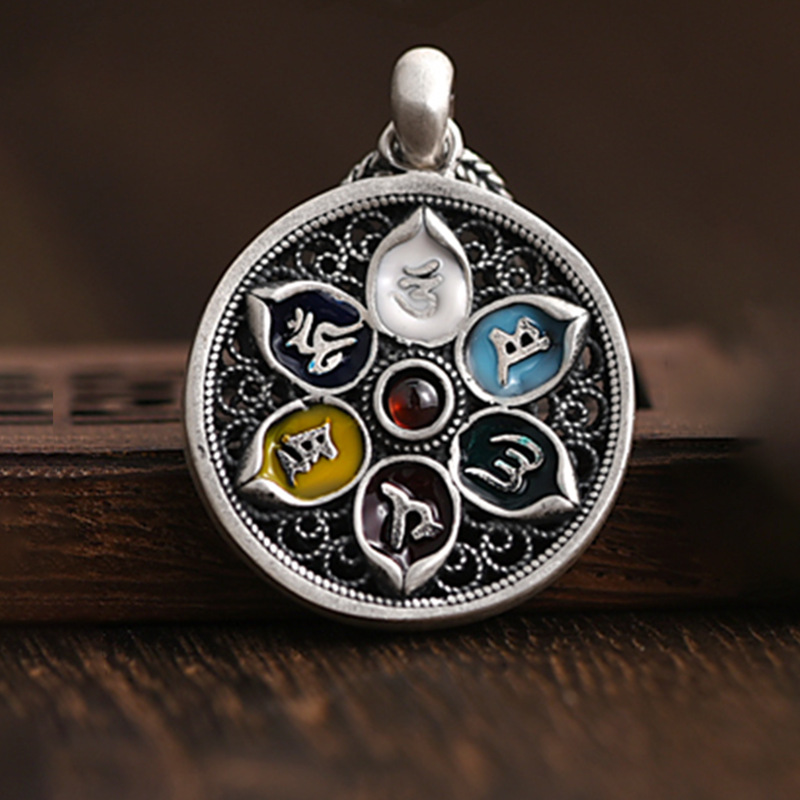 Подвеска с шестью словами, мантра, эмаль, мужская и женская национальная Мода, ретро, тайское серебро, легкая Роскошная безопасная Пряжка, ожерелье, Мужская подвеска в национальном стиле