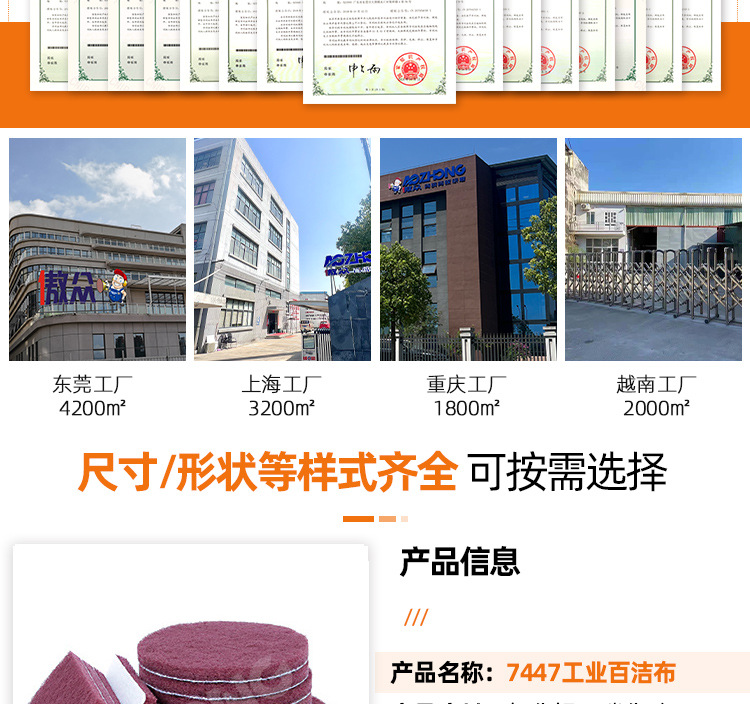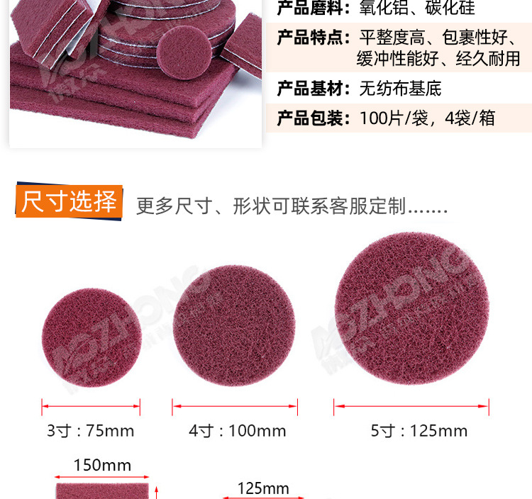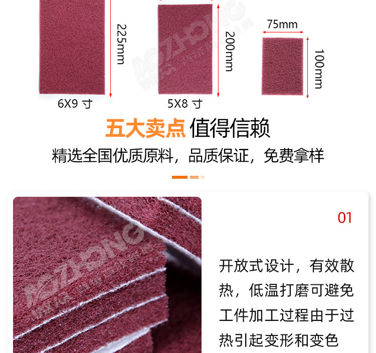 Фабрика оптом промышленные чистящие подушки 7447 Красный 400 # высокое качество текстуры обработанные Нейлон Промышленные Чистящие подушки