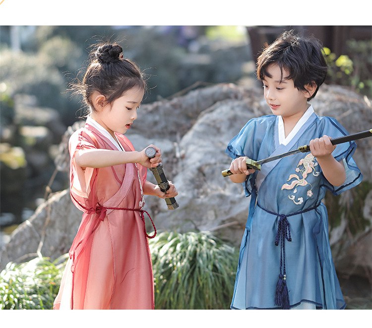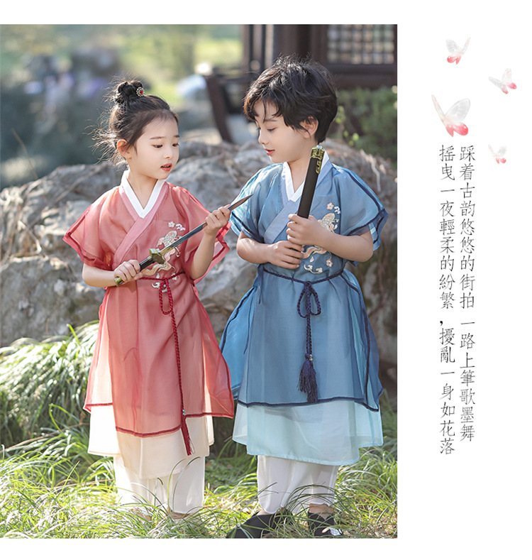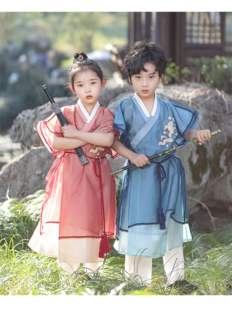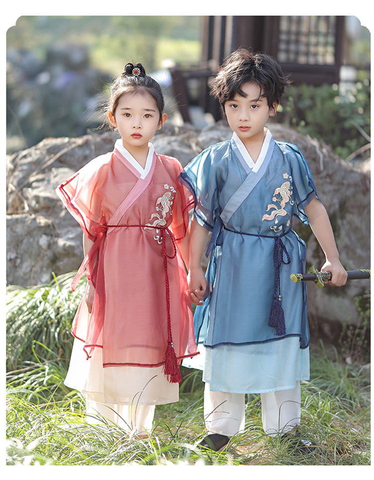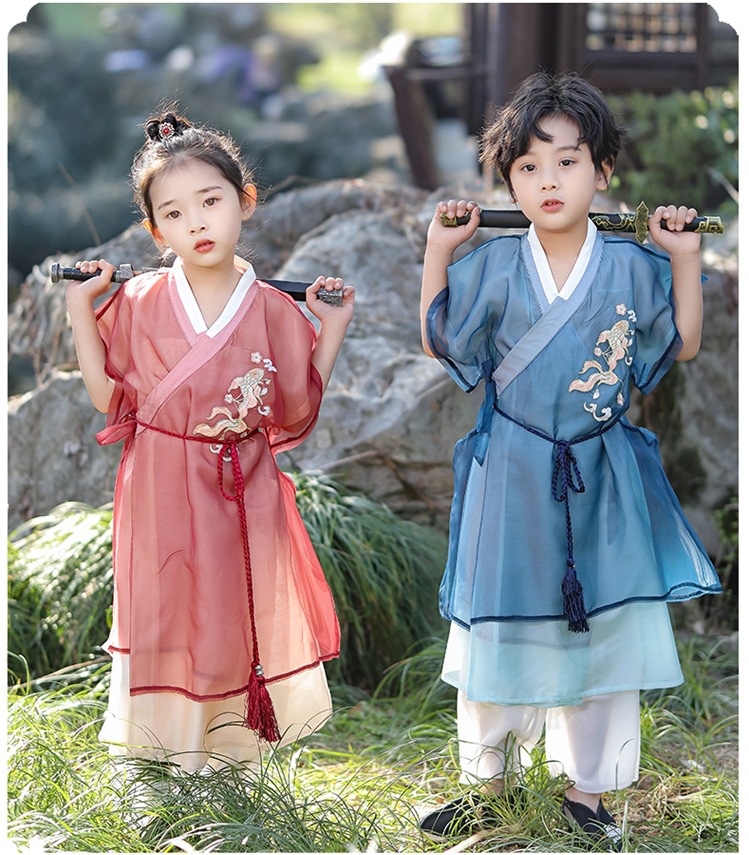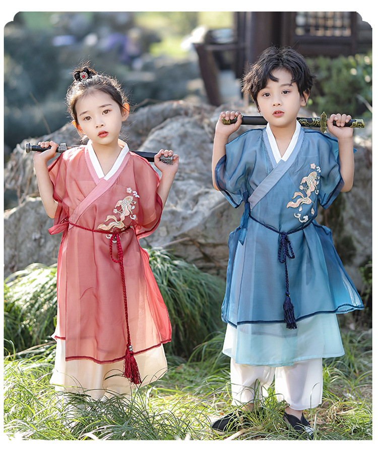 Костюм Тан для мальчиков ханьфу для девочек винтажный костюм в китайском стиле летний костюм в знаменитом этническом стиле детский фестивальный костюм